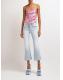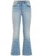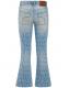 周身logo印花喇叭腿牛仔裤 - 蓝色 - 女士 - Versace - 正面纽扣和隐藏式拉链开合.