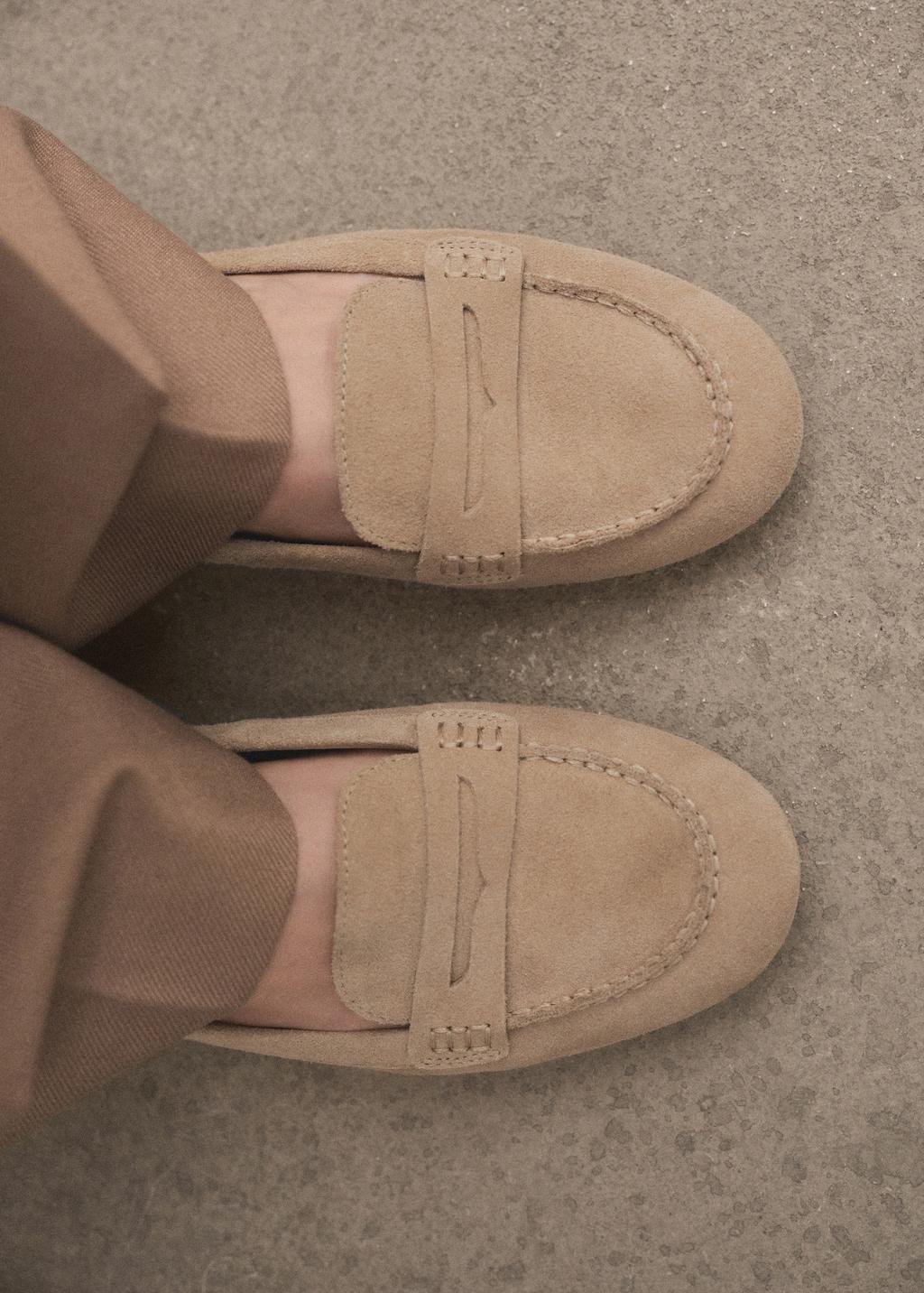 100% piel bovino. Piel de serraje. Flat. Punta redonda. Detalle de antifaz. Fruncido elástico. Sin cierre