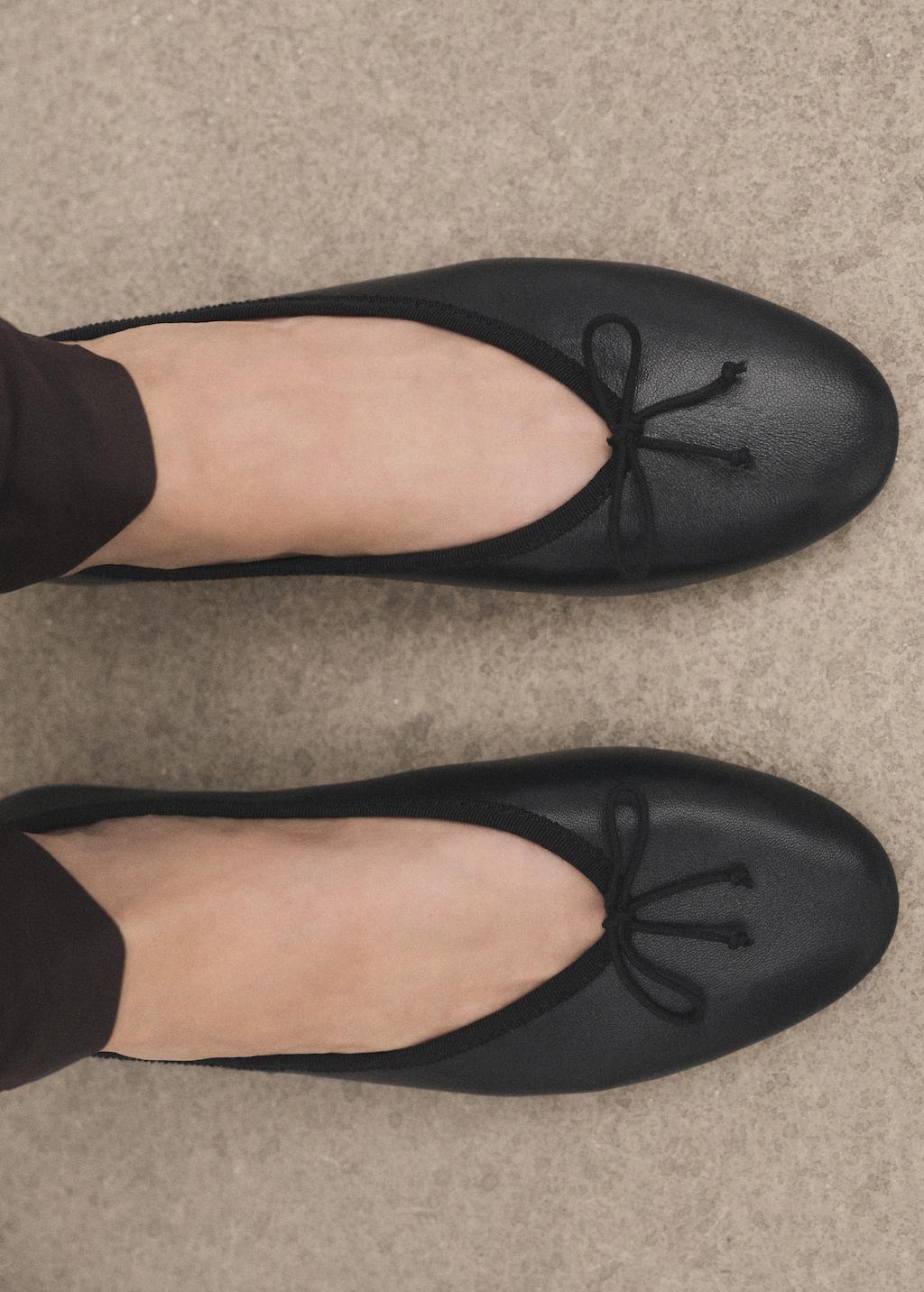 Piel caprino. Flat. Punta redonda. Detalle de lazo. Sin cierre. Forro interior