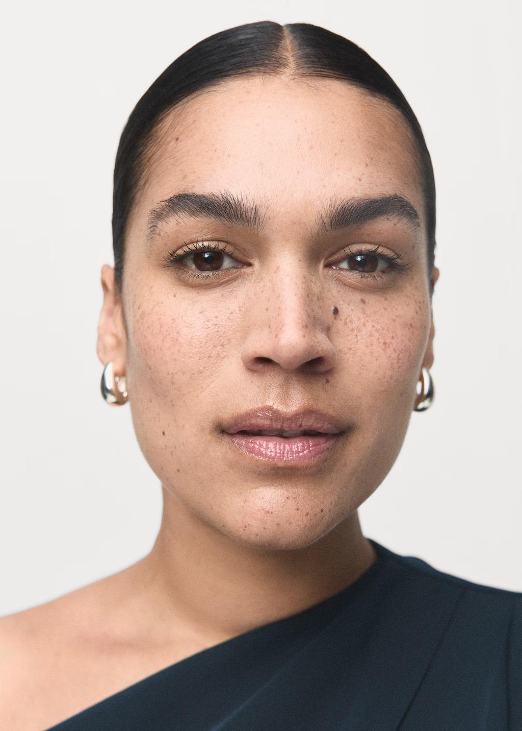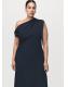 Diseño midi. Diseño evasé. Cuello asimétrico. Sin mangas. Detalle fruncido en el hombro. Cierre de cremallera lateral. Disponible Plus