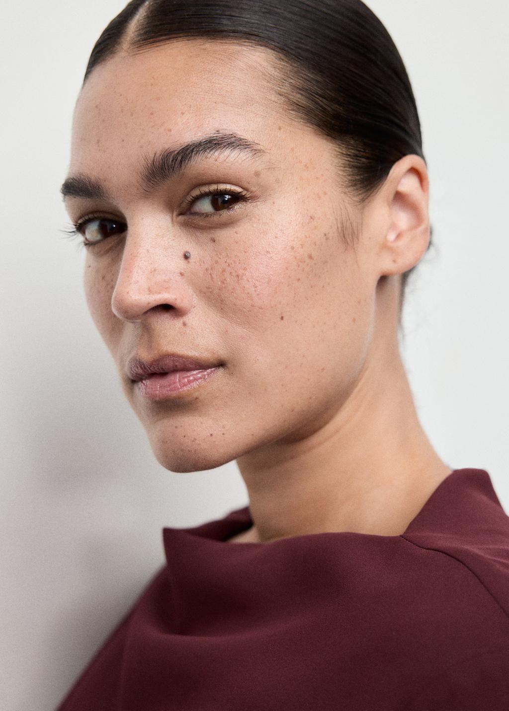 Diseño corto. Diseño entallado. Cuello barco. Manga larga. Fruncidos laterales. Sin cierre. Disponible Plus