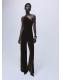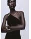 Tejido de terciopelo. Diseño largo. Diseño entallado. Cuello asimétrico. Detalle metálico. Fruncido lateral. Cierre de cremallera lateral