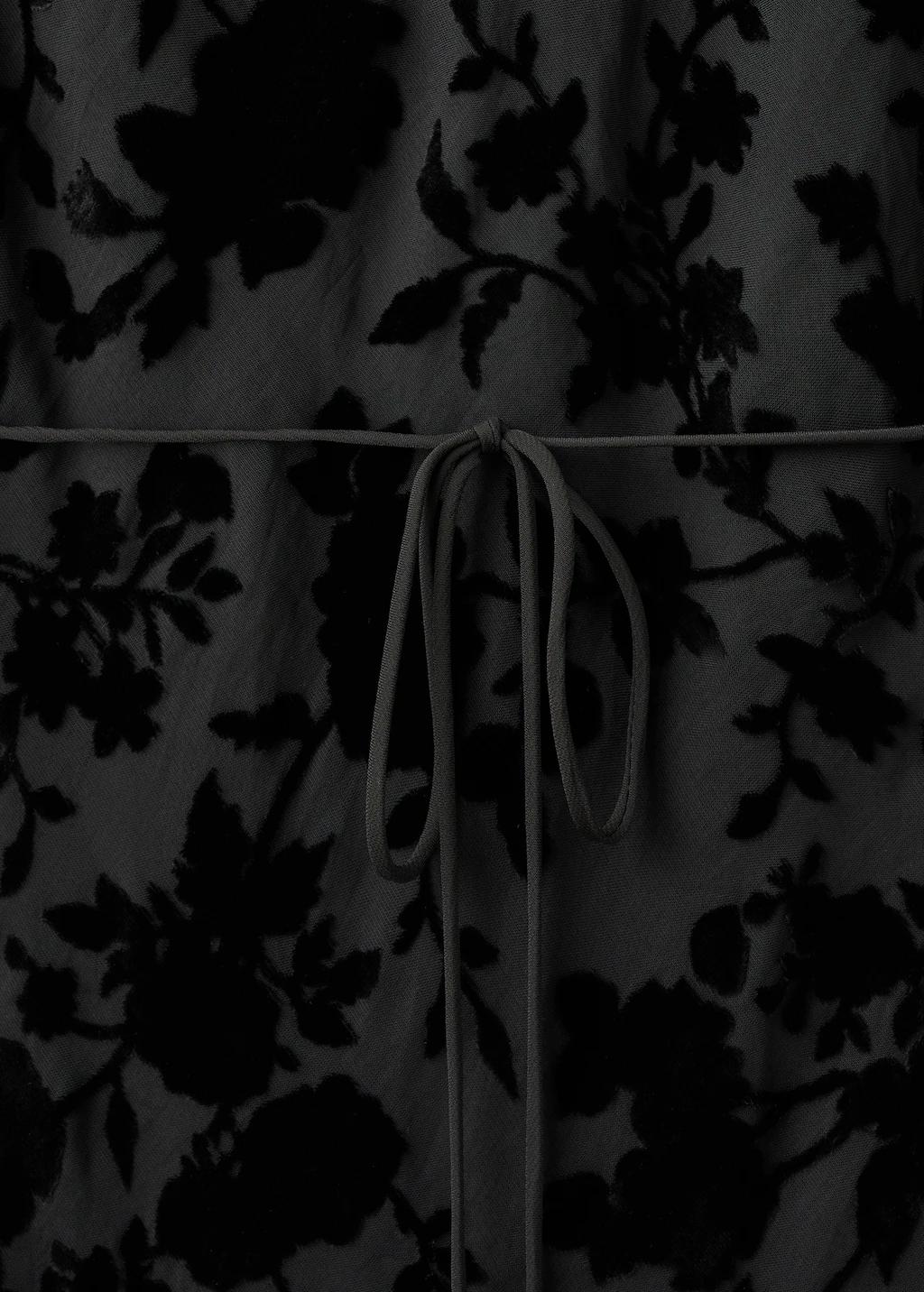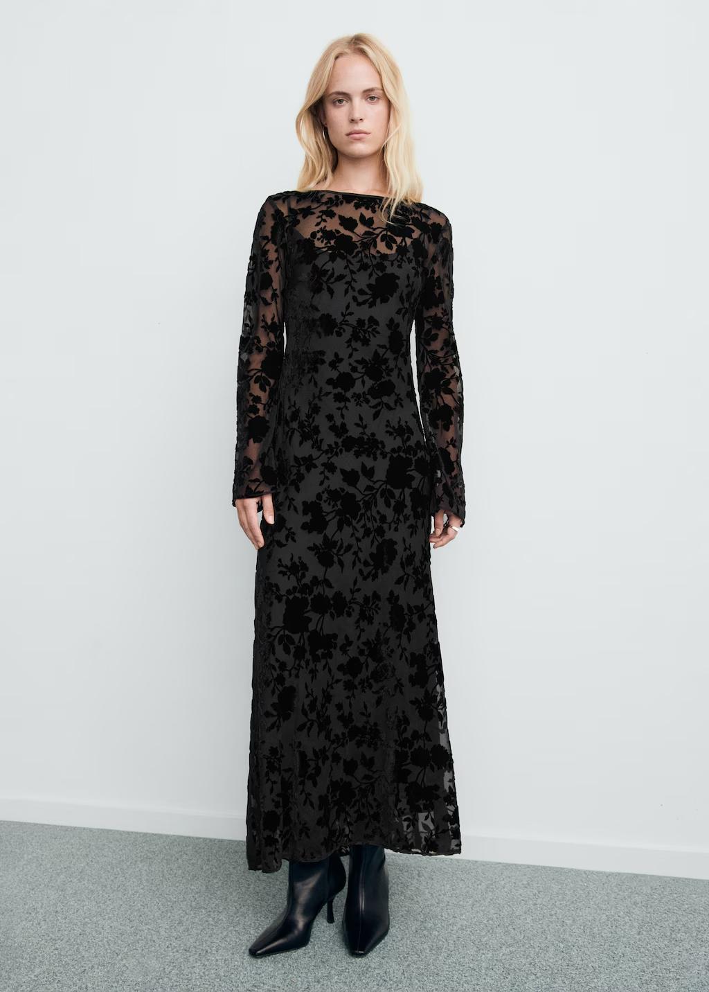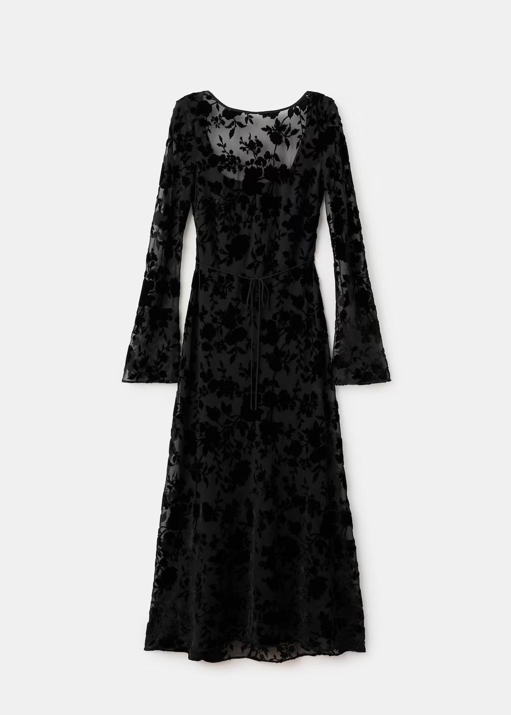 Tejido jacquard floral. Diseño largo. Diseño recto. Cuello barco. Espalda con escote. Manga larga acampanada. Lazo ajustable. Forro interior. Esta prenda pertenece a nuestra colección de evento, diseñada para convertirte en la invitada perfecta en cualquier fiesta, boda o ceremonia. Exclusivo Online