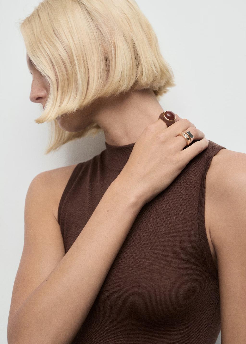 Tejido de punto fino. Diseño midi. Diseño evasé. Cuello perkins. Sin mangas. Tirantes anchos. Sin cierre. Disponible Plus. Esta prenda forma parte de nuestra colección casual, diseñada para acompañarte con estilo en tu día a día