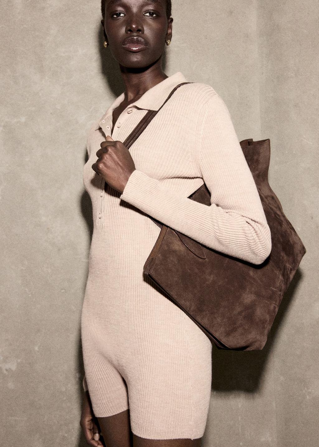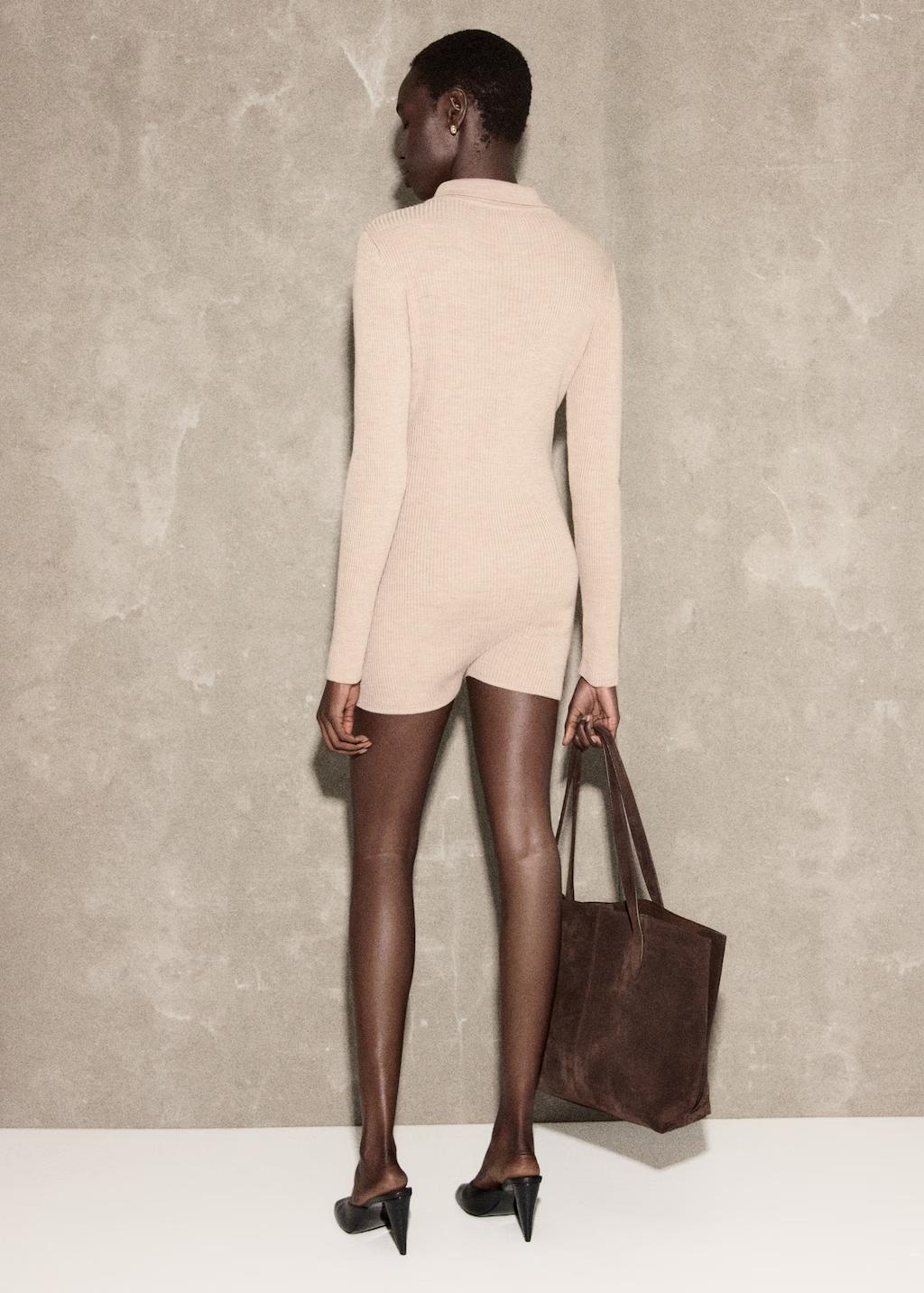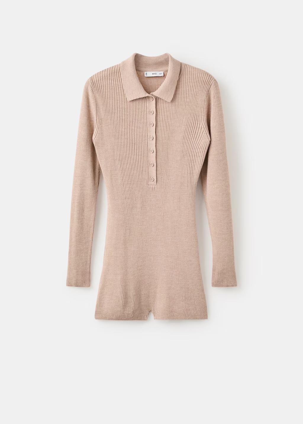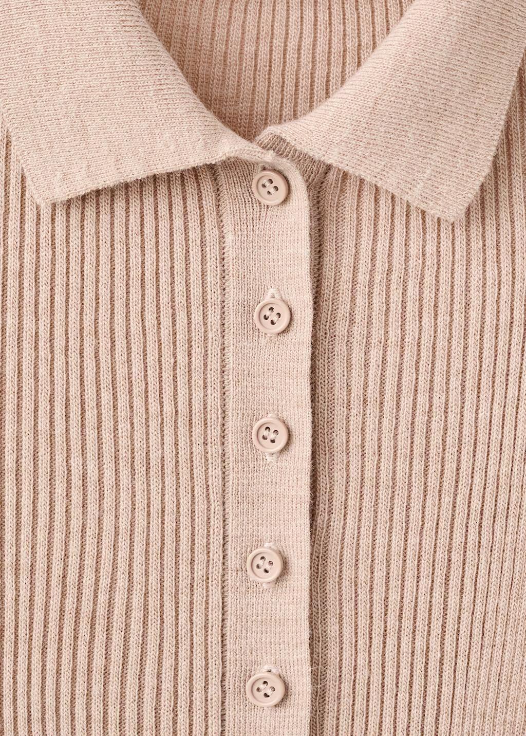 Tejido de punto de canalé. Diseño corto. Diseño entallado. Cuello polo con cierre de botones. Manga larga. Cierre de botones en el cuello