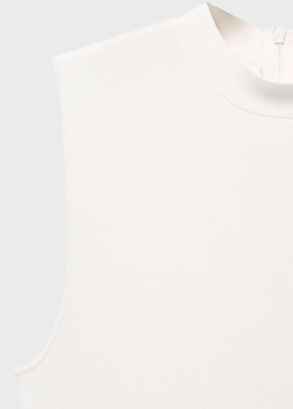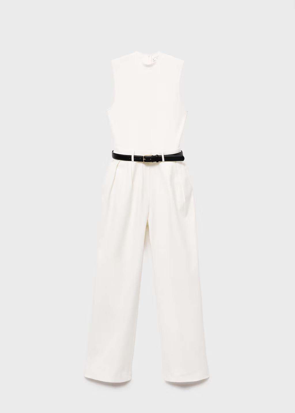 Tejido combinado. Diseño largo. Diseño recto. Cuello perkins. Sin mangas. Tirantes anchos. Trabillas. Dos bolsillos laterales. Cinturón con cierre de hebilla. Detalle de pinzas delanteras. Cierre de cremallera en la parte posterior. Forro interior