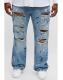 Stacked Slim Flare Call It Art Paint Splatter Ripped Jeans - Medium Blue Wash | Fashion Nova