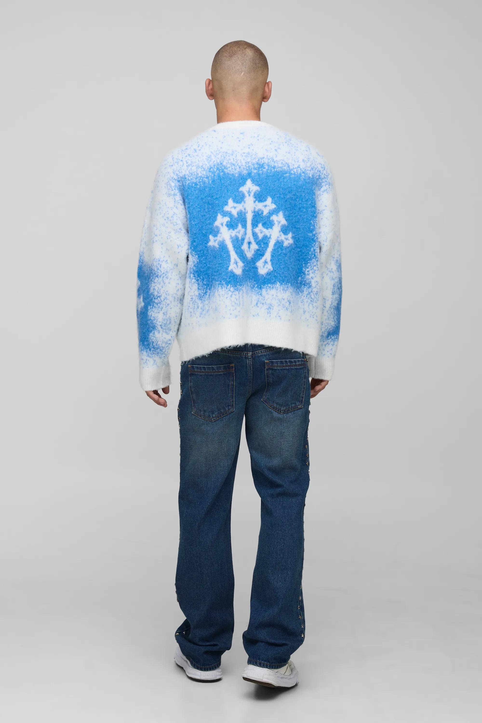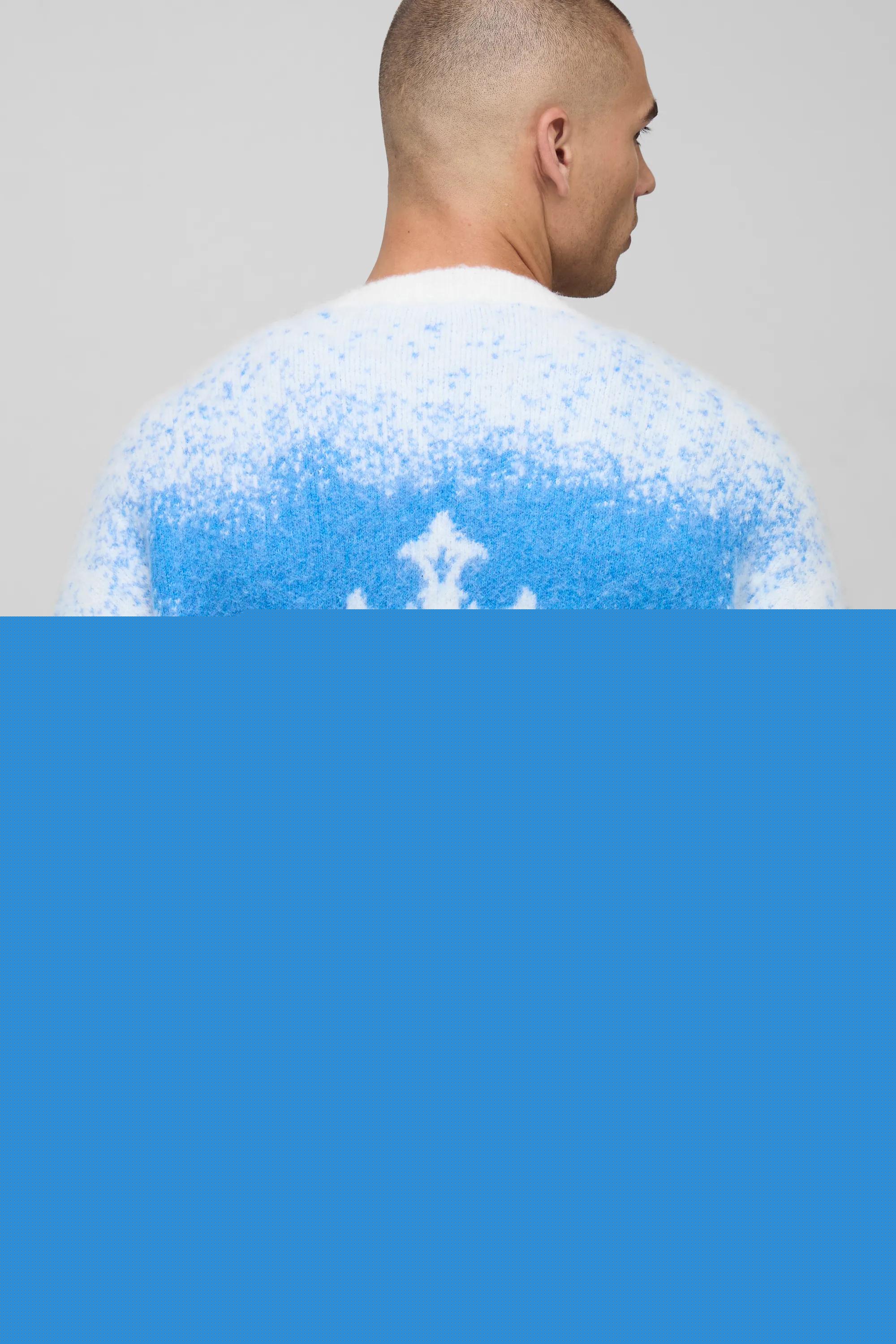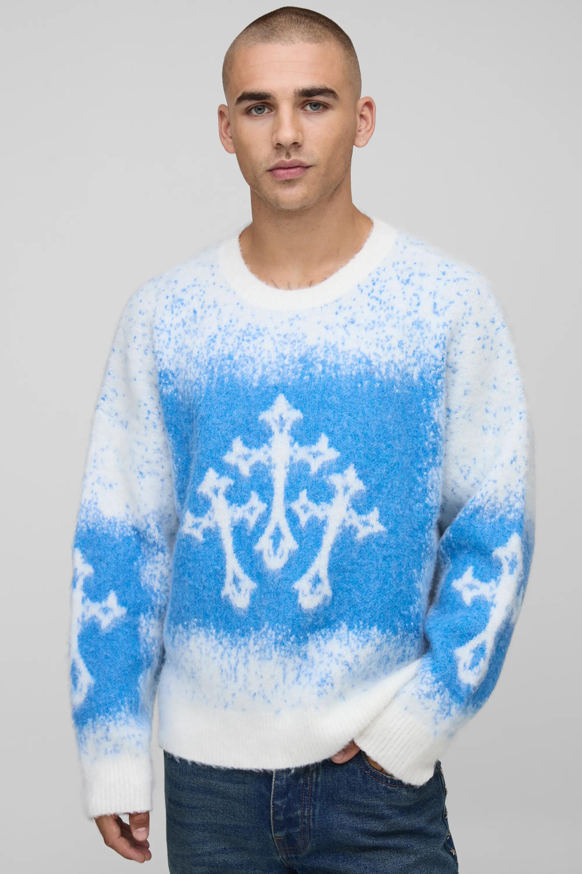 Jumpers & Cardigans | Oversized Boxy Fit Cross Jacquard Fluffy Knitted Jumper | boohooMAN