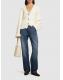 低腰宽松牛仔裤 - 蓝色 - 女士 - Aya Muse - 正面纽扣开合.