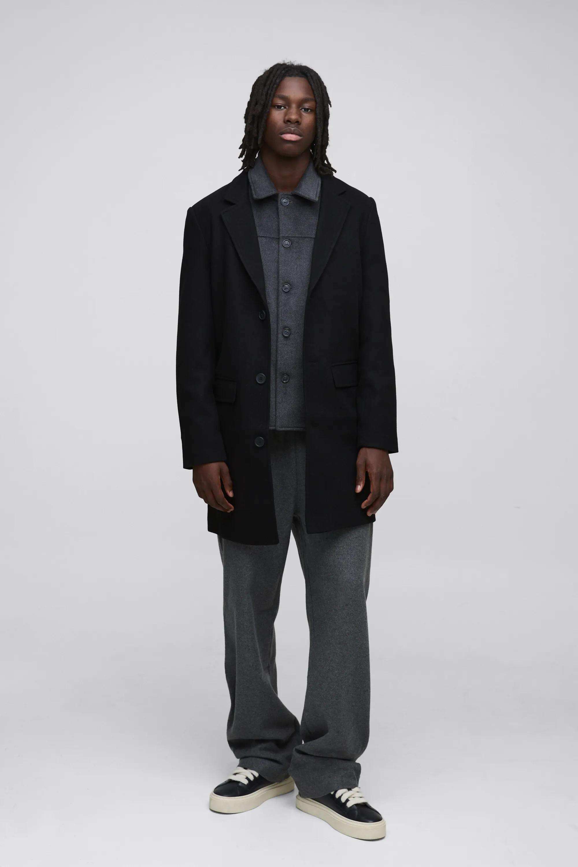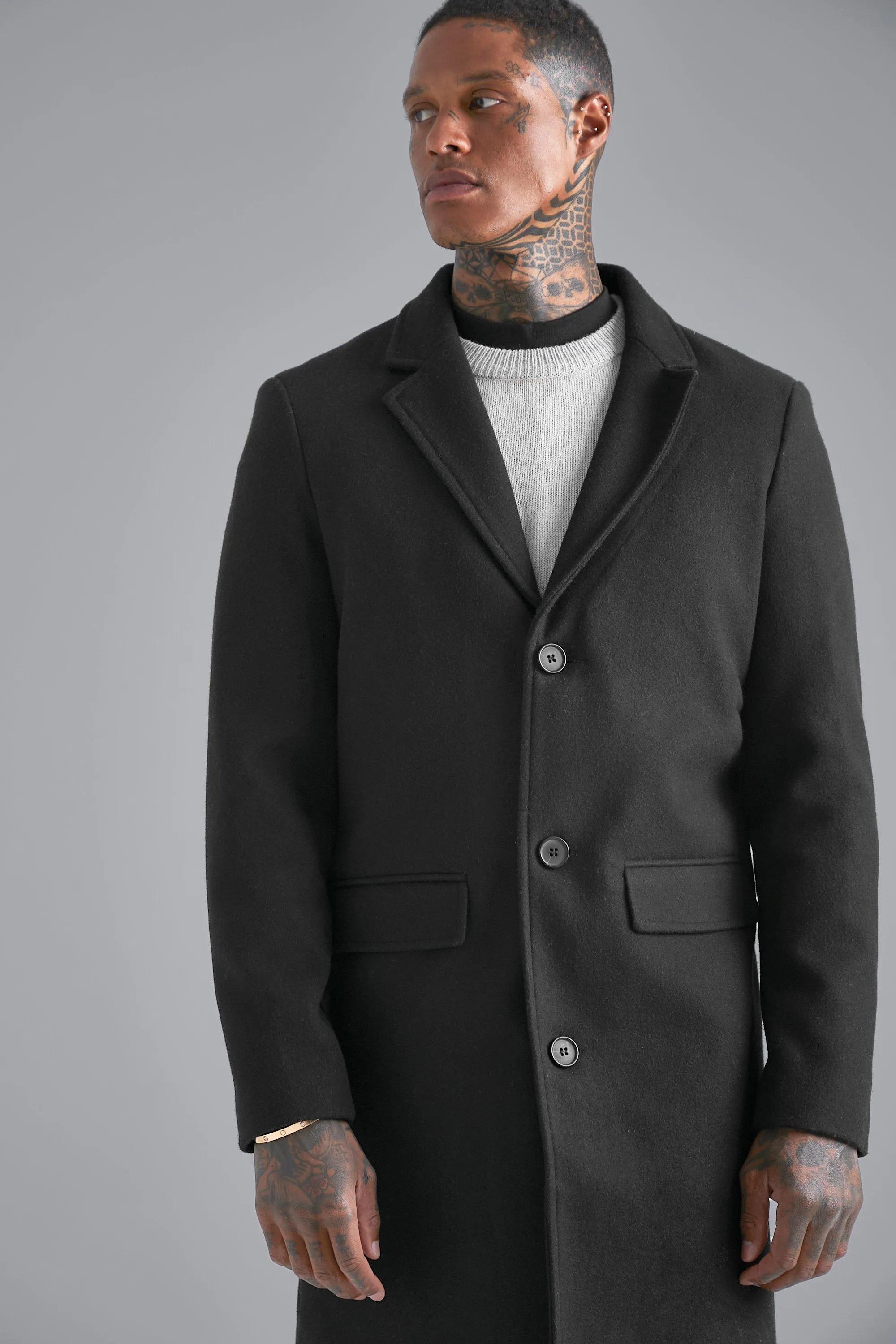 Jackets & Coats | Single Breasted Wool Mix Overcoat | boohooMAN