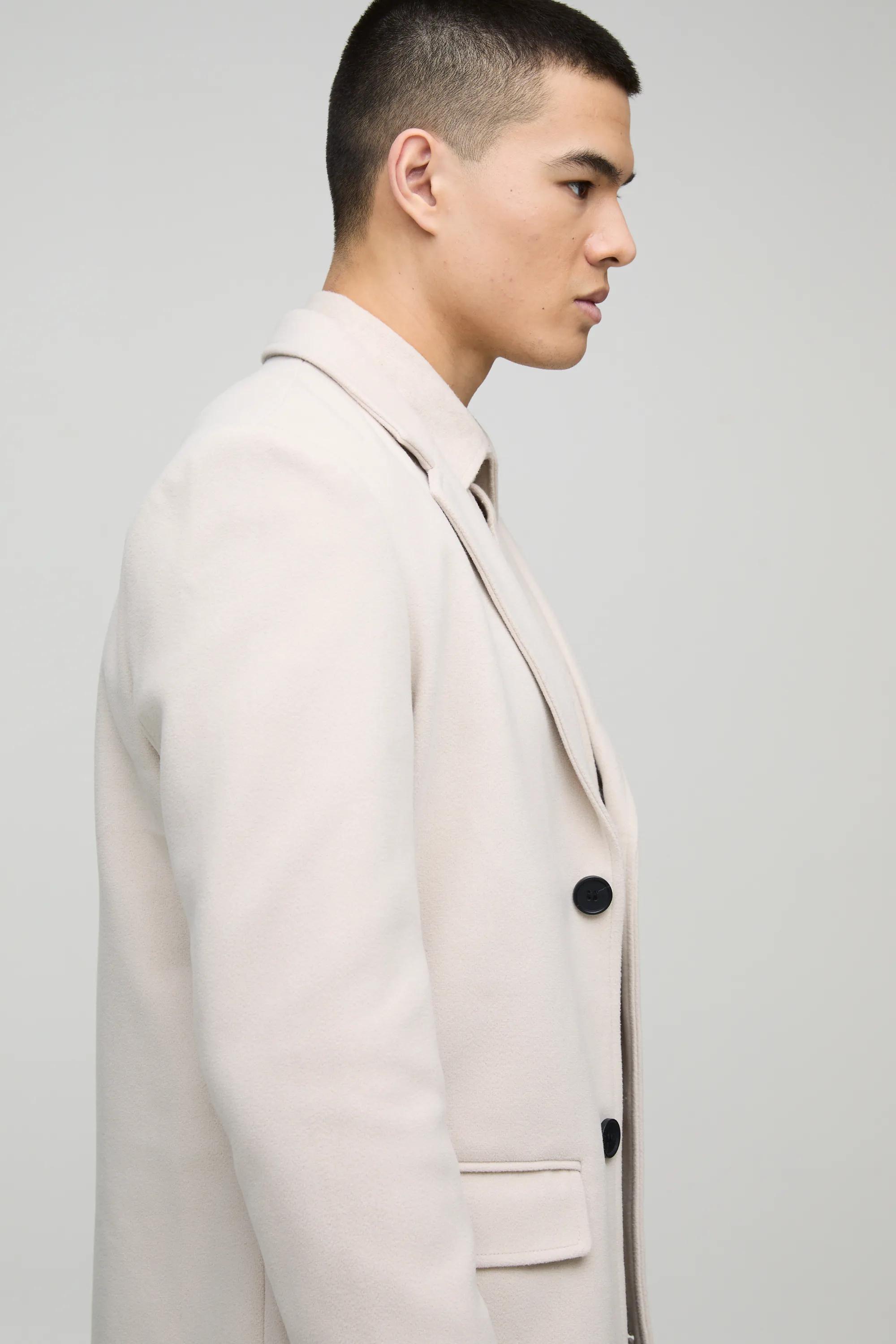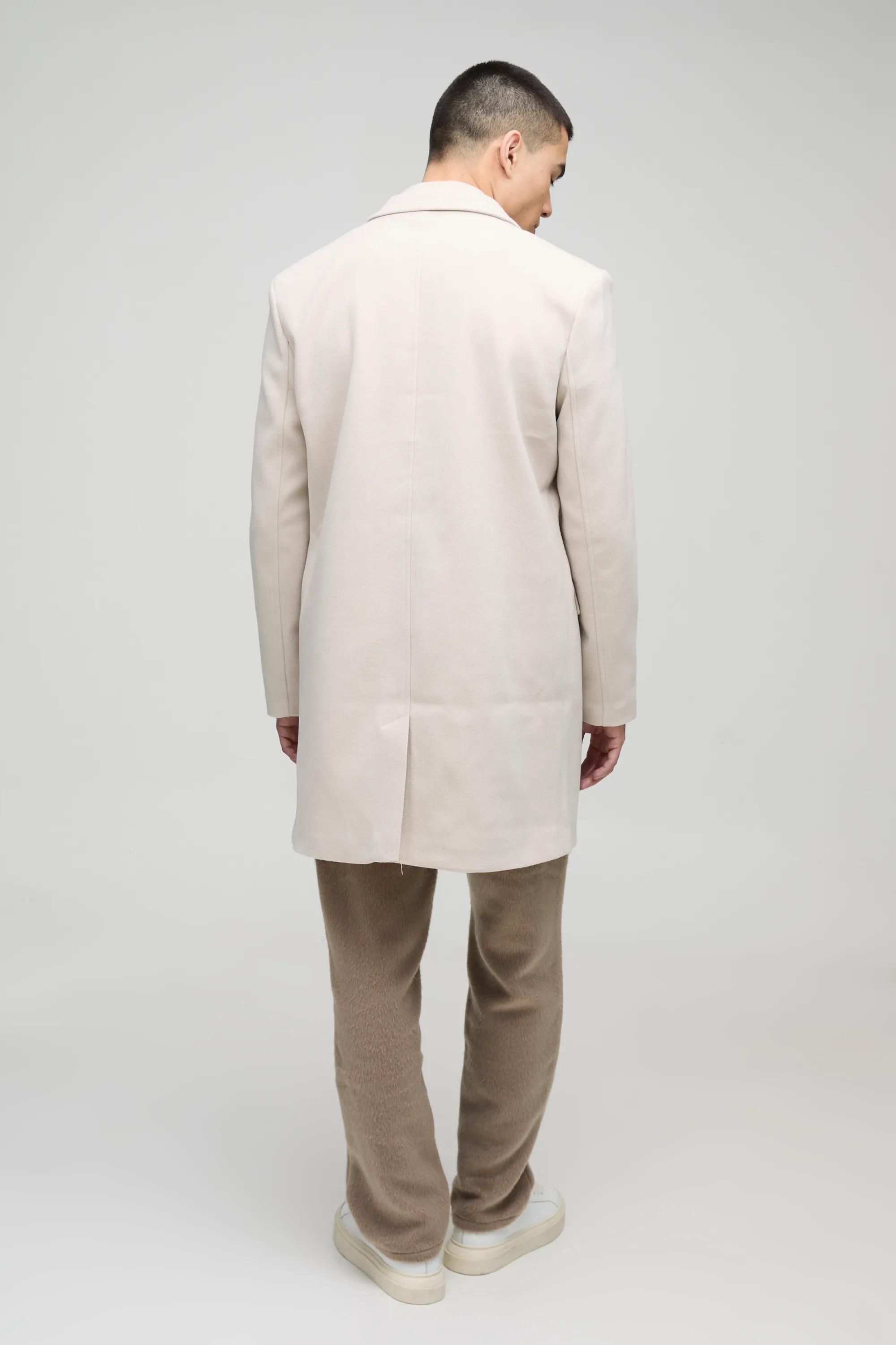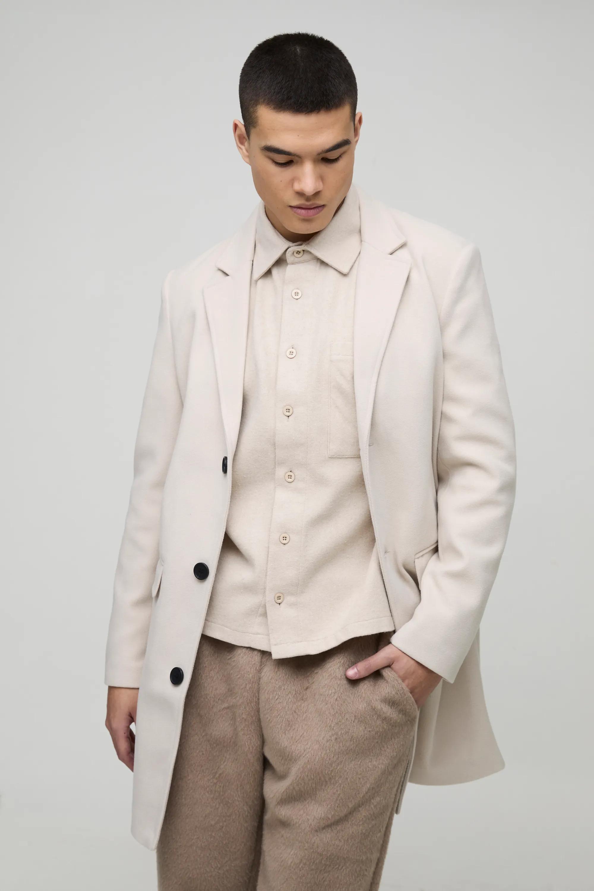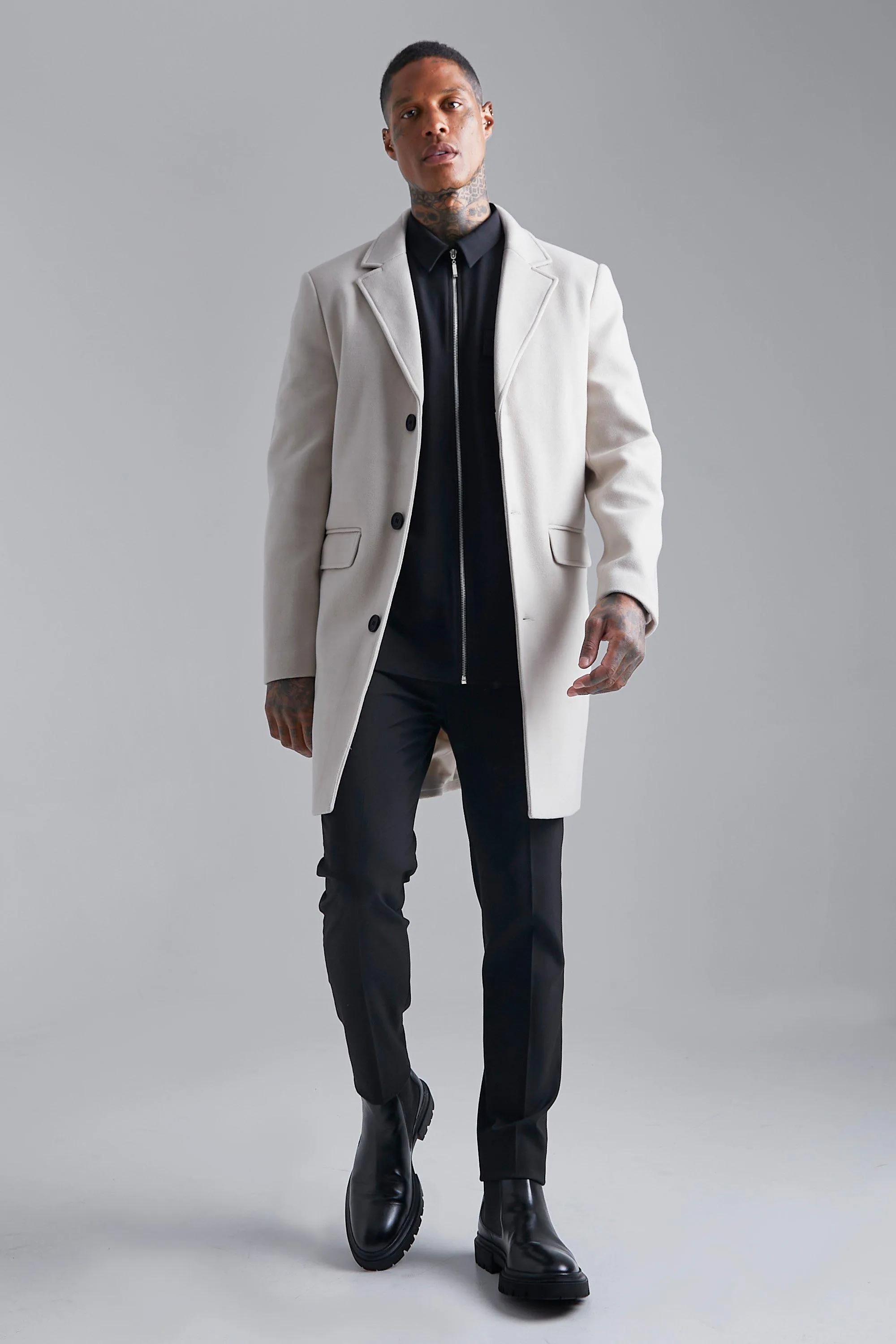 Jackets & Coats | Single Breasted Wool Look Overcoat in Beige | boohooMAN