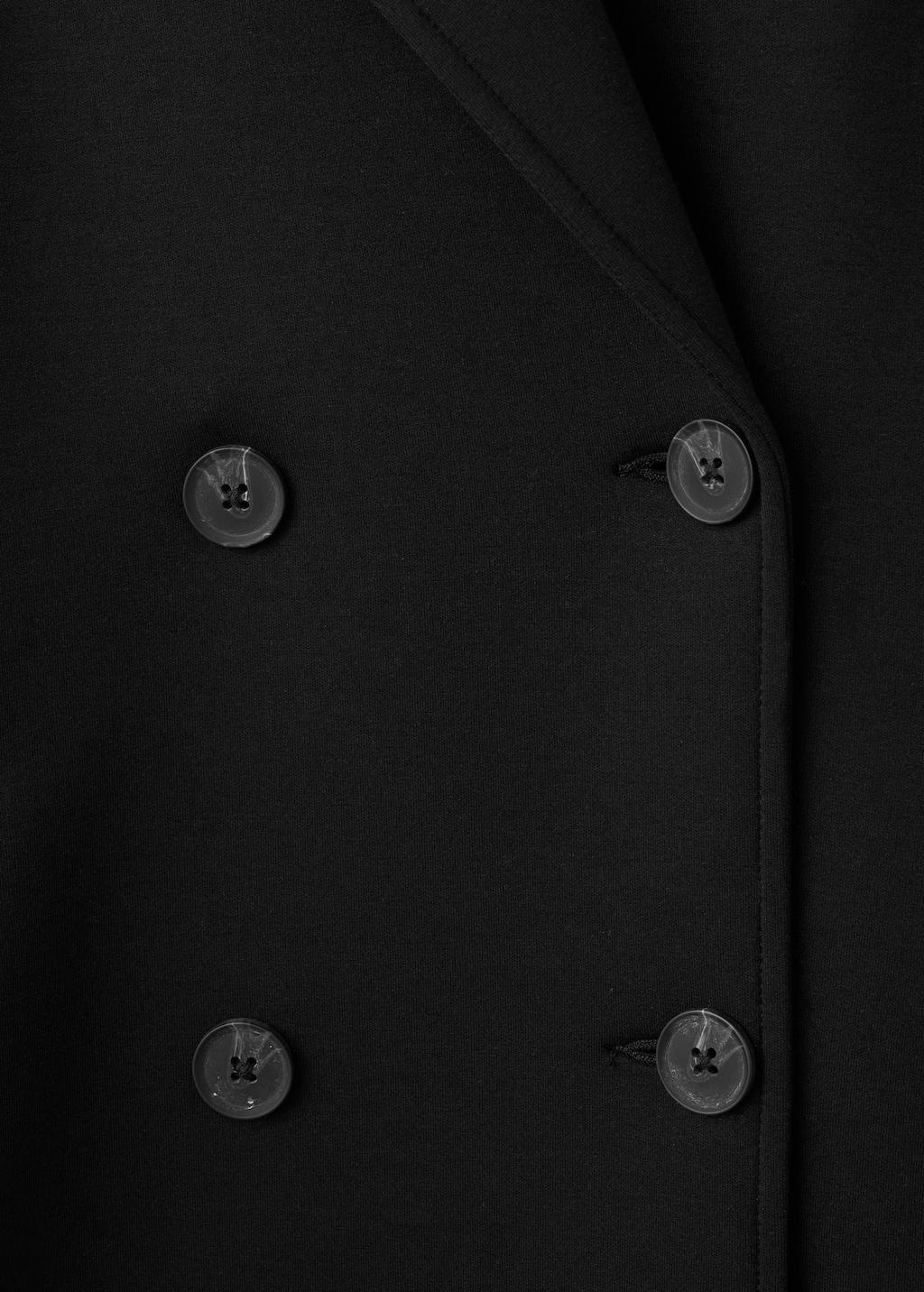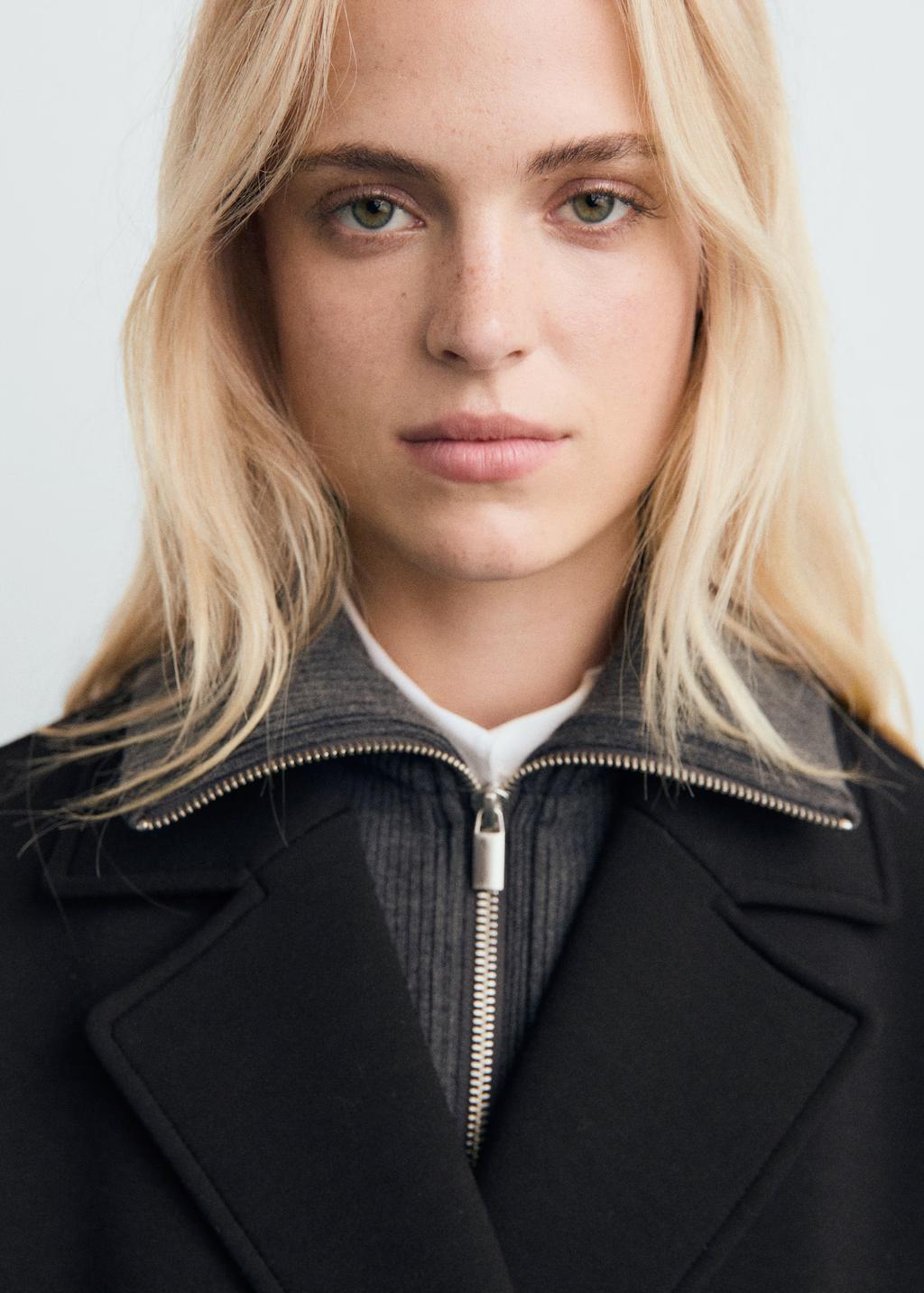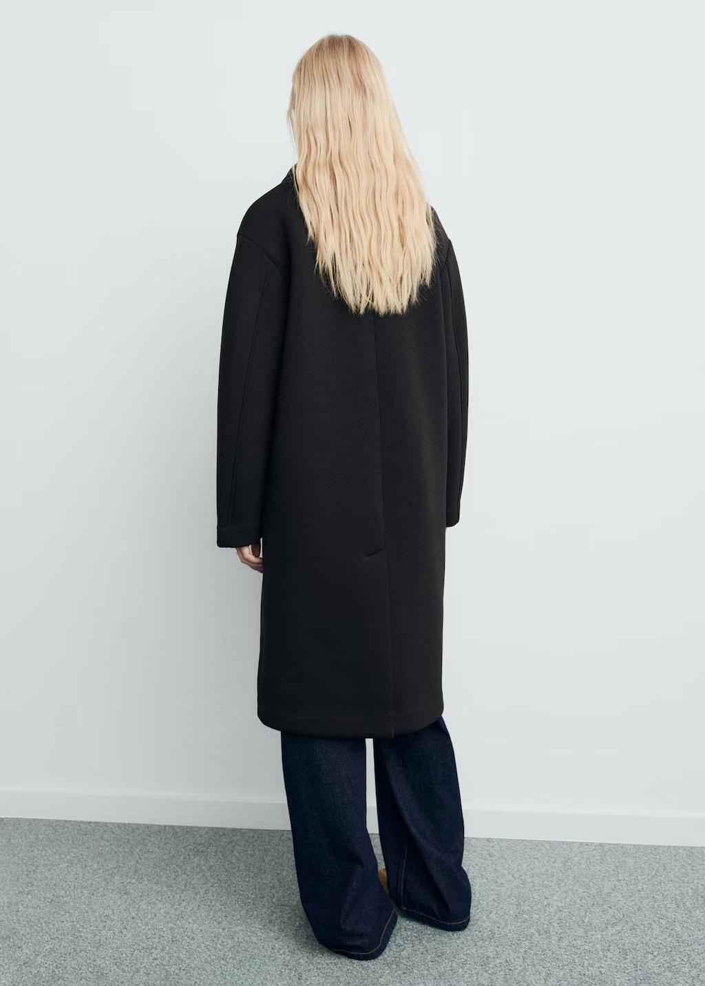 Con un diseño largo y recto, este abrigo presenta un estilo combinado con cuello camisero y manga larga. Incluye dos bolsillos laterales y cierre de doble botonadura, además de un forro interior
