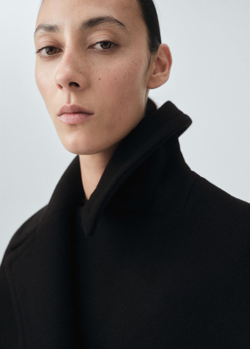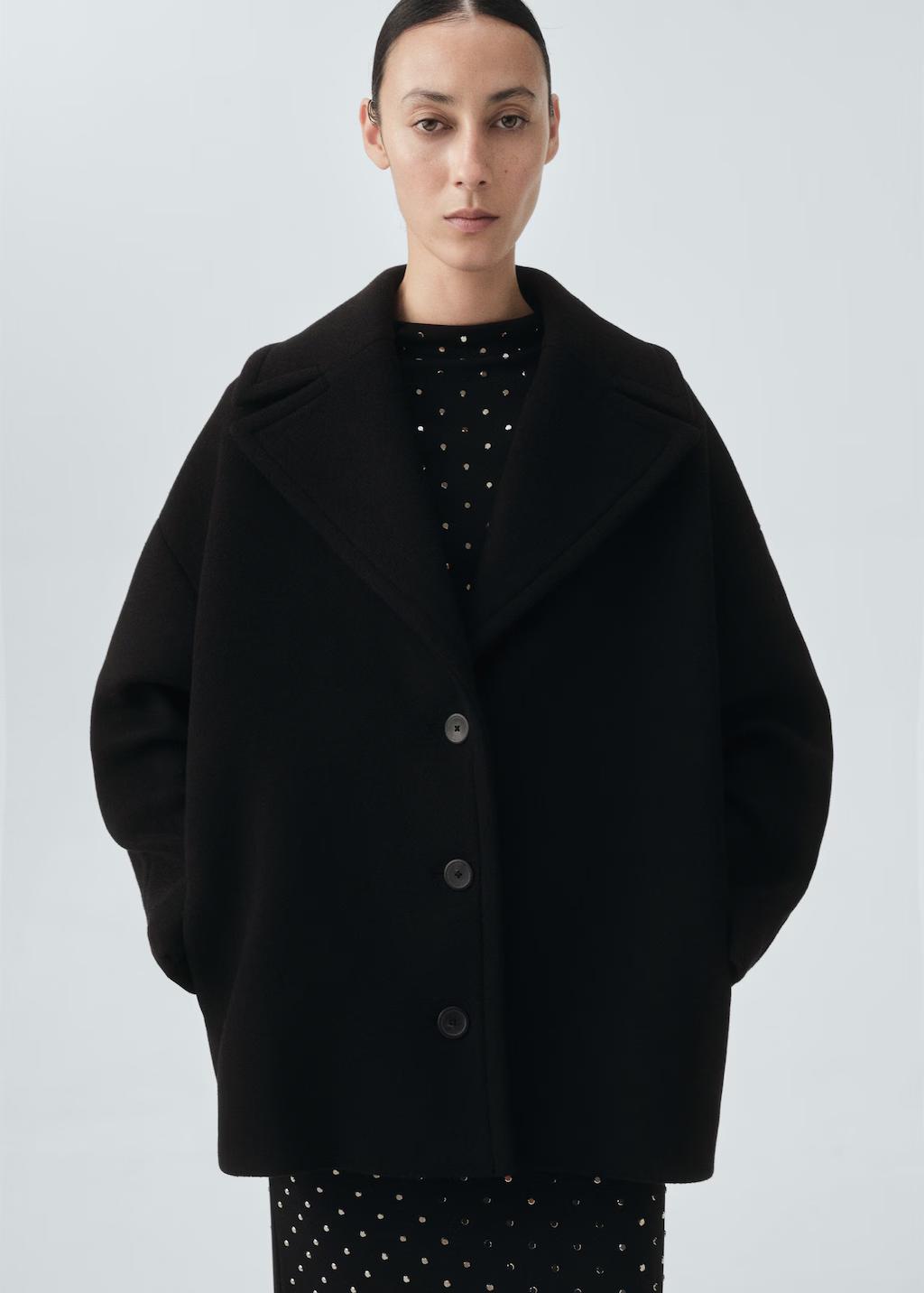 Confeccionado en tejido de lana, este diseño oversize presenta un cuello pico de solapas con muesca. Incluye manga larga, cierre delantero con botones y forro interior. Colección Selection. Una selección de prendas refinadas, confeccionadas con tejidos de calidad para construir un armario femenino y contemporáneo