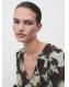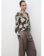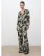 Confeccionada en tejido de gasa, esta prenda presenta un diseño recto con estampado floral. El cuello escotado se complementa con un cierre de lazo, mientras que las mangas largas tienen puños abotonados. Cuenta con un pantalón a conjunto