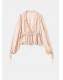 Con un diseño recto, esta prenda presenta un escote de pico adornado con un lazo. Las mangas largas tienen puños abullonados y cierre de lazo, mientras que los detalles en puntilla añaden un toque especial