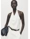 Tejido satinado. Diseño recto. Cuello halter. Cuello drapeado. Sin mangas. Espalda abierta