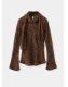 Con estampado de leopardo, esta prenda presenta un cuello redondo con adorno de fular y cierre de botón. La manga larga acampanada complementa su diseño