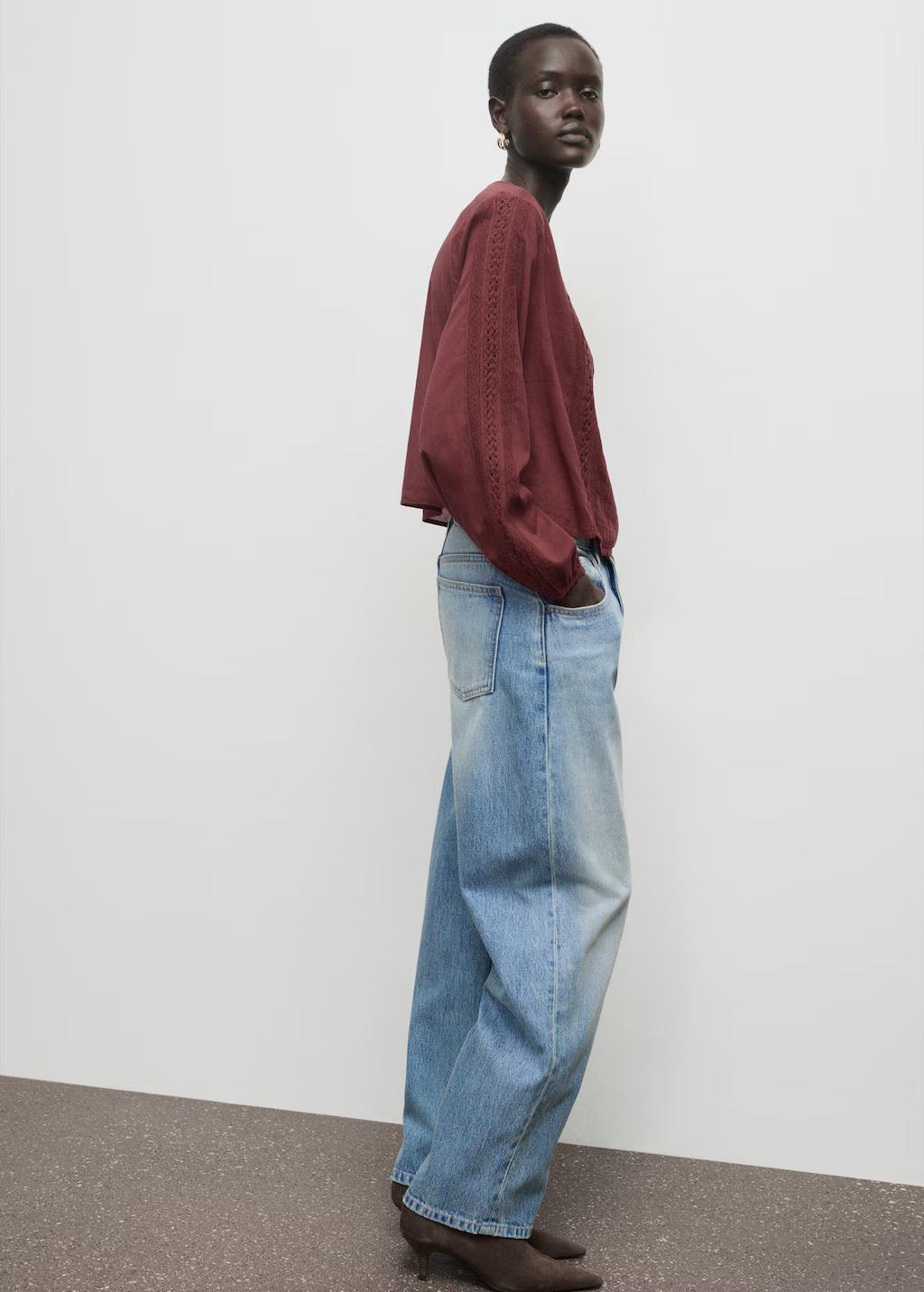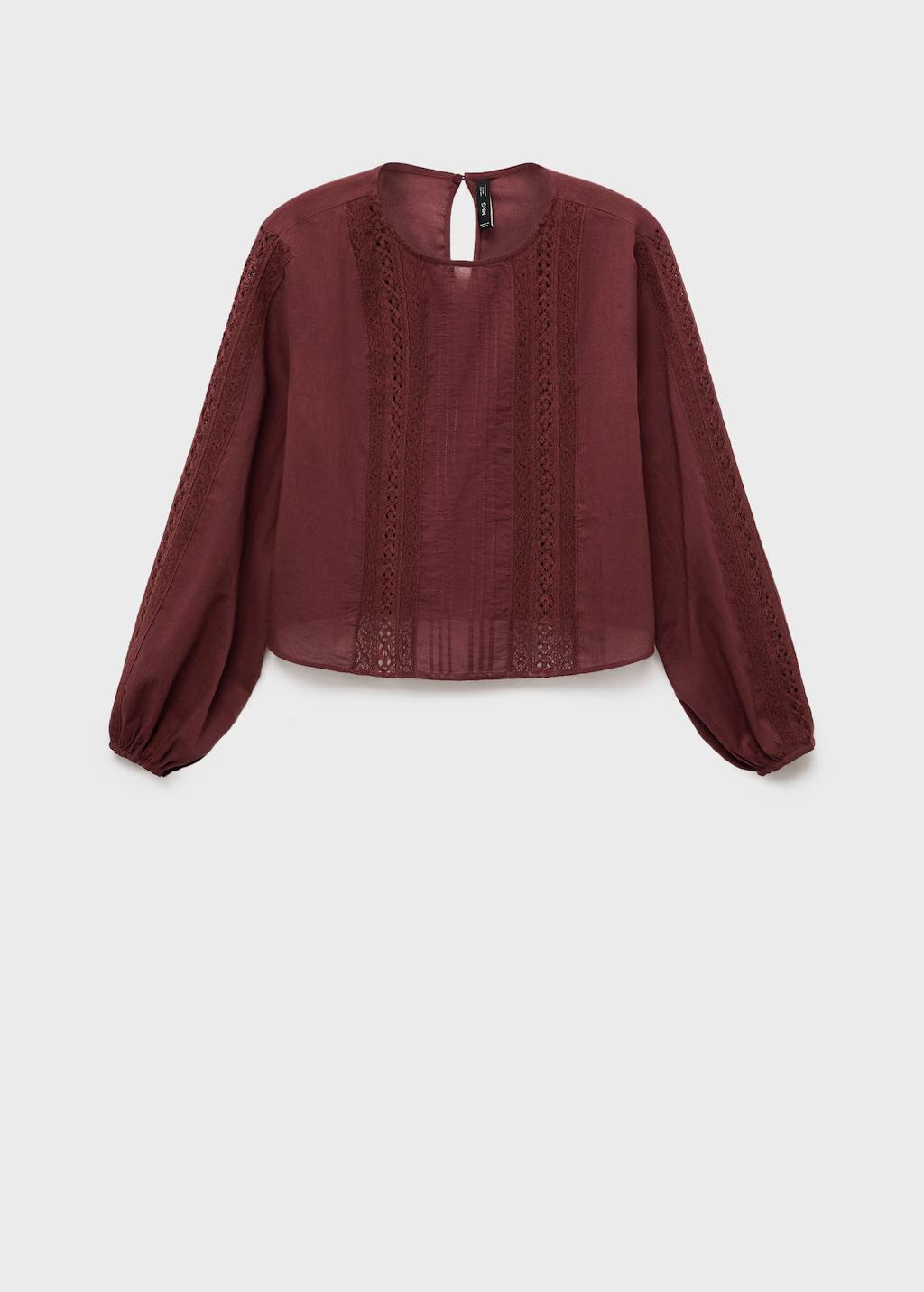 Confeccionada en tejido 100% algodón, esta prenda presenta un diseño recto con cuello redondo. Las mangas largas abullonadas y los detalles bordados añaden un toque especial. Cierre de botón en la parte posterior