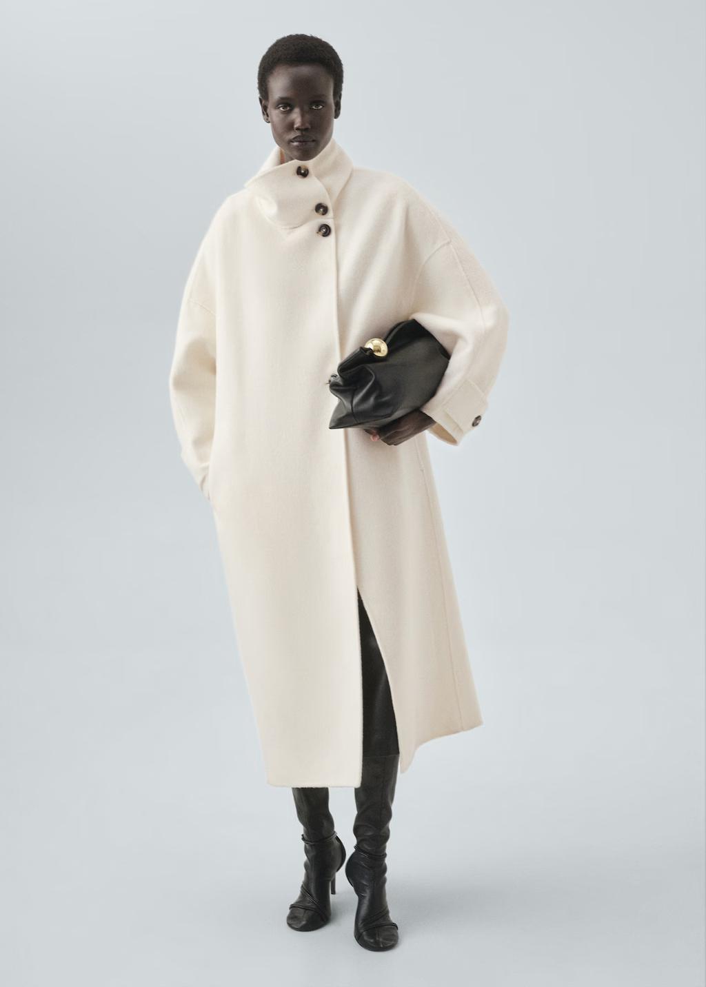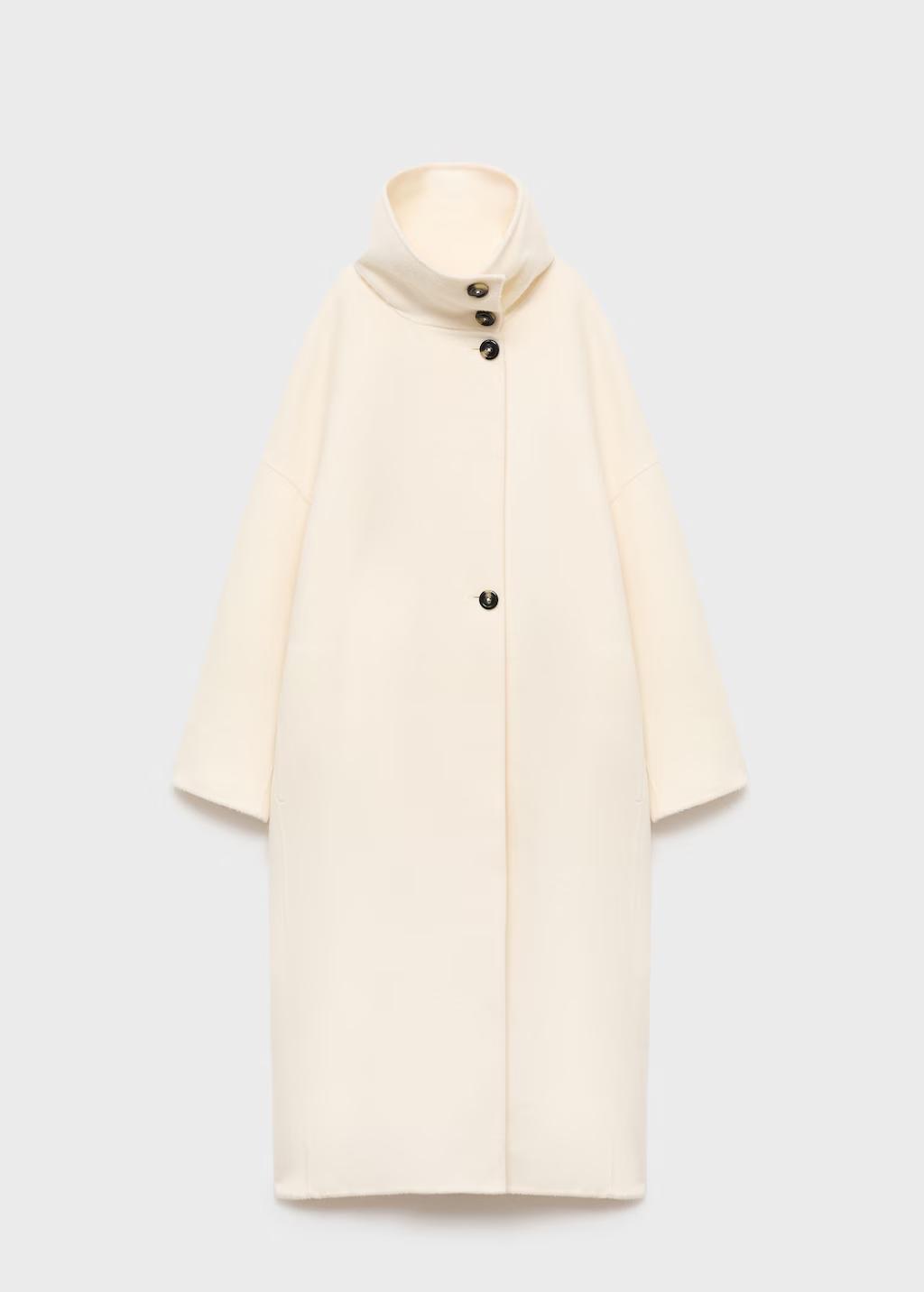 Confeccionado en tejido mezcla de lana, este diseño oversize presenta un cuello chimenea con cierre de botones. Incluye manga larga y cierre delantero de botón. Colección Selection. Una selección de prendas refinadas, confeccionadas con tejidos de calidad para construir un armario femenino y contemporáneo