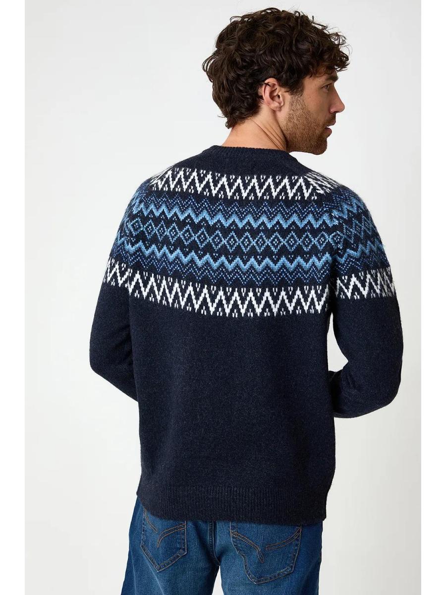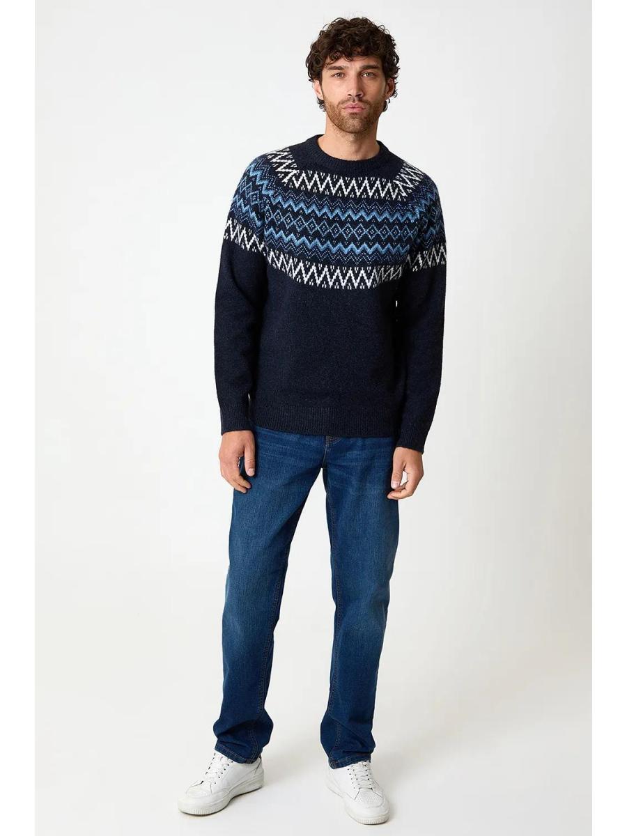 Get in the festive spirit this season with this knitted crew neck jumper from Threadbare. With a ladderback jacquard fairisle pattern across the chest and back, this raglan sleeve jumper has a crew neck, and ribbed cuffs and hem for comfort. Made from a blend of yarns with a touch of wool, this cosy jumper is an essential for your knitwear collection. Pair with your favourite Threadbare coat, jeans and boots for an outfit perfect for the Christmas markets.