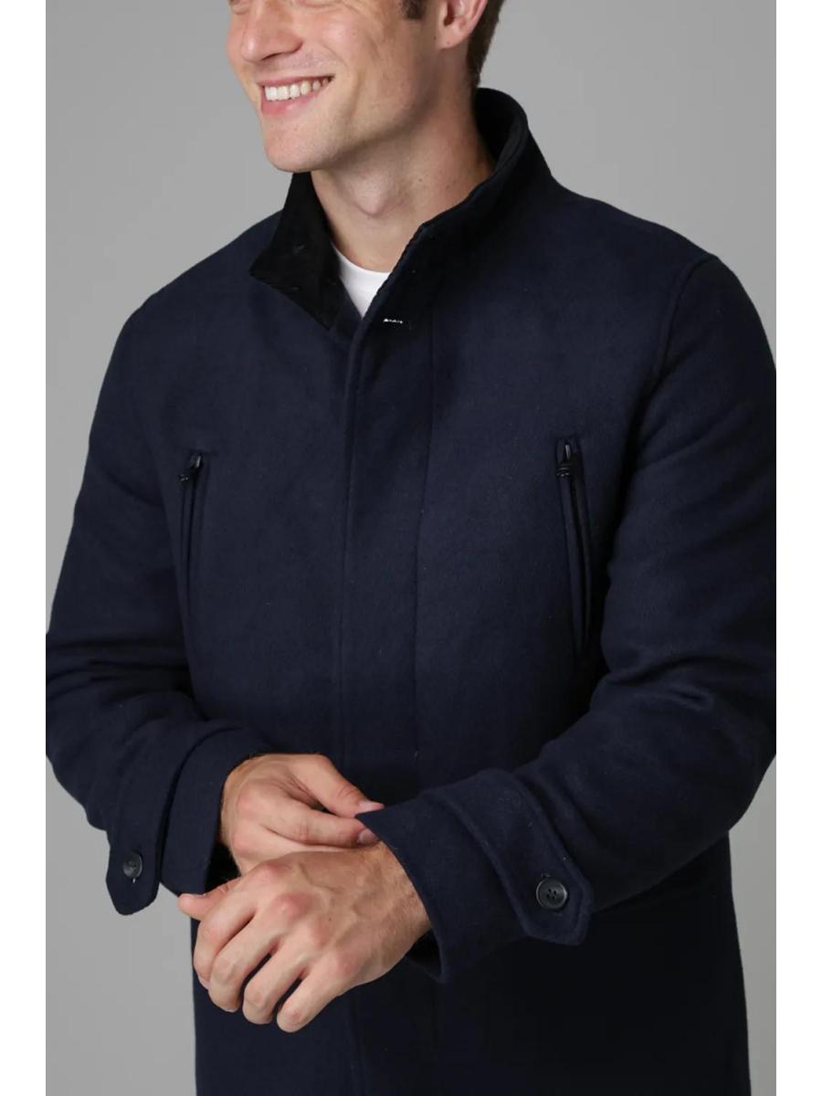 Layer up in this cold-weather classic from Kensington Eastside. Crafted from a soft wool blend, this button-up coat features a high funnel neck, tonal pocket details and zip-fastening pockets for added function. A timeless piece that works perfectly over jeans or tailored looks when the temperature drops.