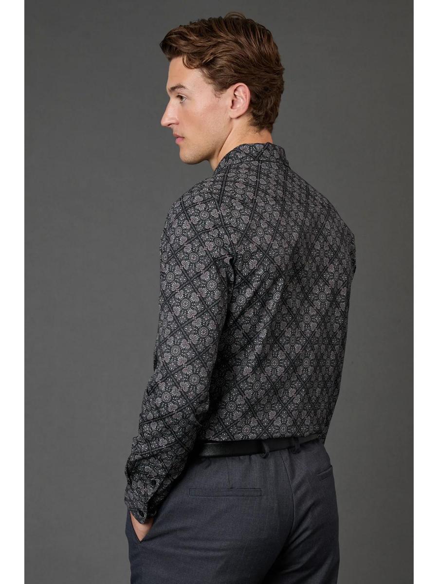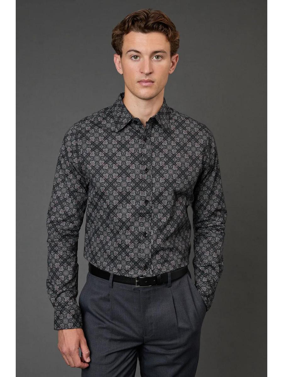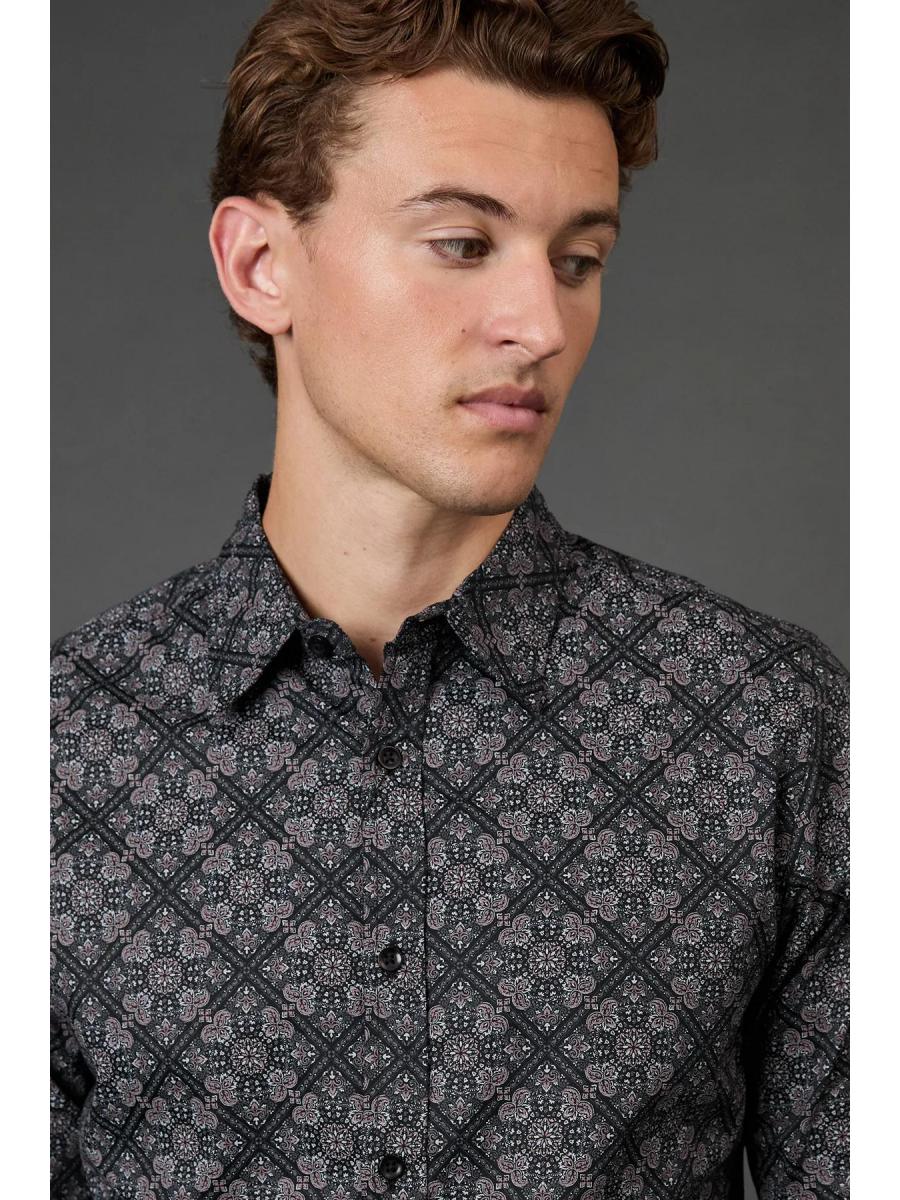 \u003cdiv\u003e\n \u003cul\u003e\n \u003cli\u003eSlim fit design with a tailored silhouette for a contemporary look\u003c/li\u003e\n \u003cli\u003eDistinctive tile print pattern that adds visual interest to your outfit\u003c/li\u003e\n \u003cli\u003eLong sleeves with button cuffs for versatile styling options\u003c/li\u003e\n \u003cli\u003eClassic collar that maintains its shape throughout the day\u003c/li\u003e\n \u003cli\u003eButton-through front closure for easy wear and a clean finish\u003c/li\u003e\n \u003c/ul\u003e\n \u003cp\u003eThis Burton tile print shirt combines classic styling with modern detailing, perfect for the man who appreciates subtle sophistication. The slim fit construction creates a sharp silhouette without sacrificing comfort, whilst the distinctive geometric pattern adds character to your casual wardrobe. Style it as shown with tailored trousers and smart shoes for family gatherings or weekend brunches, or dress it down with dark jeans and Chelsea boots for pub outings with mates. The versatile design transitions effortlessly from daytime casual to evening drinks, making it an essential piece for your wardrobe rotation. For a relaxed weekend look, leave it untucked over chinos with your favourite trainers. This shirt reflects Burton's commitment to creating timeless pieces that suit the modern British man's lifestyle.\u003c/p\u003e\n\u003c/div\u003e