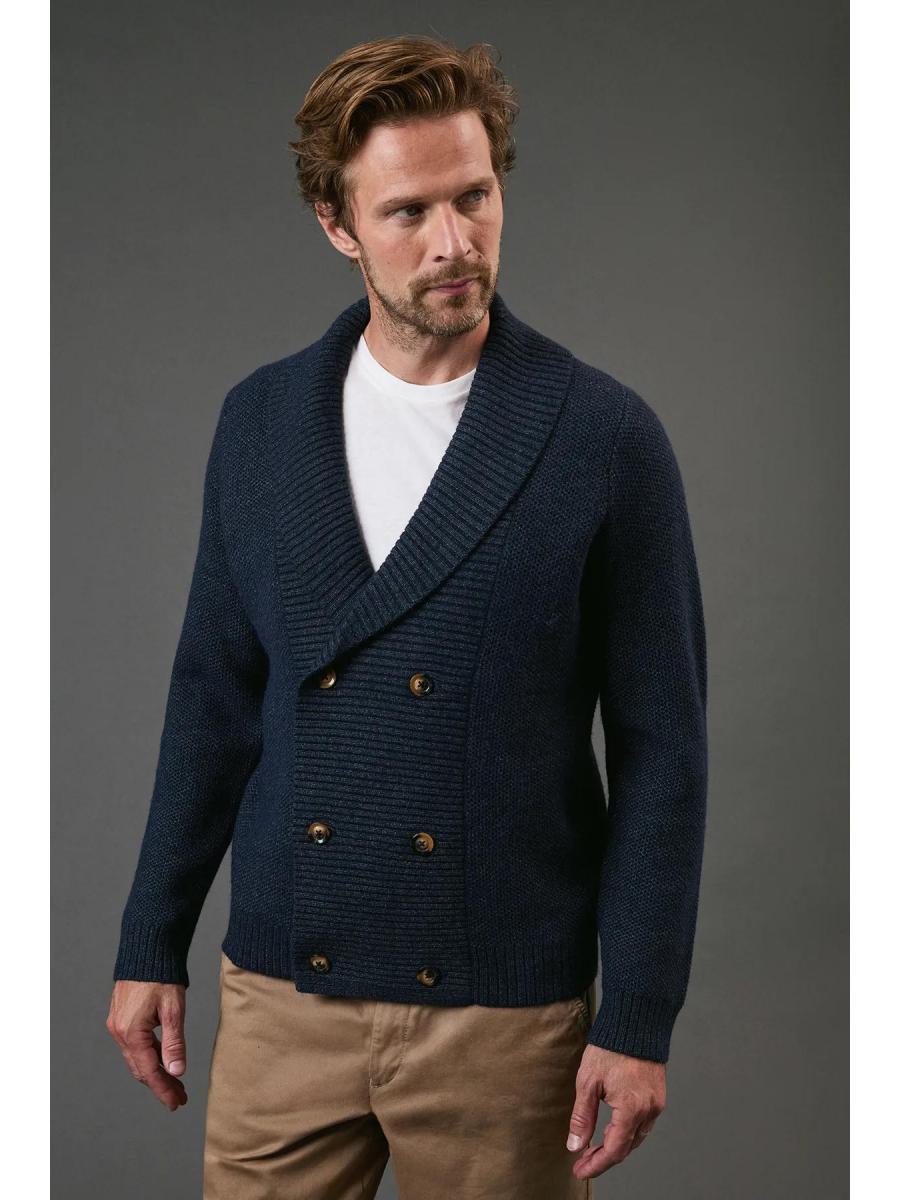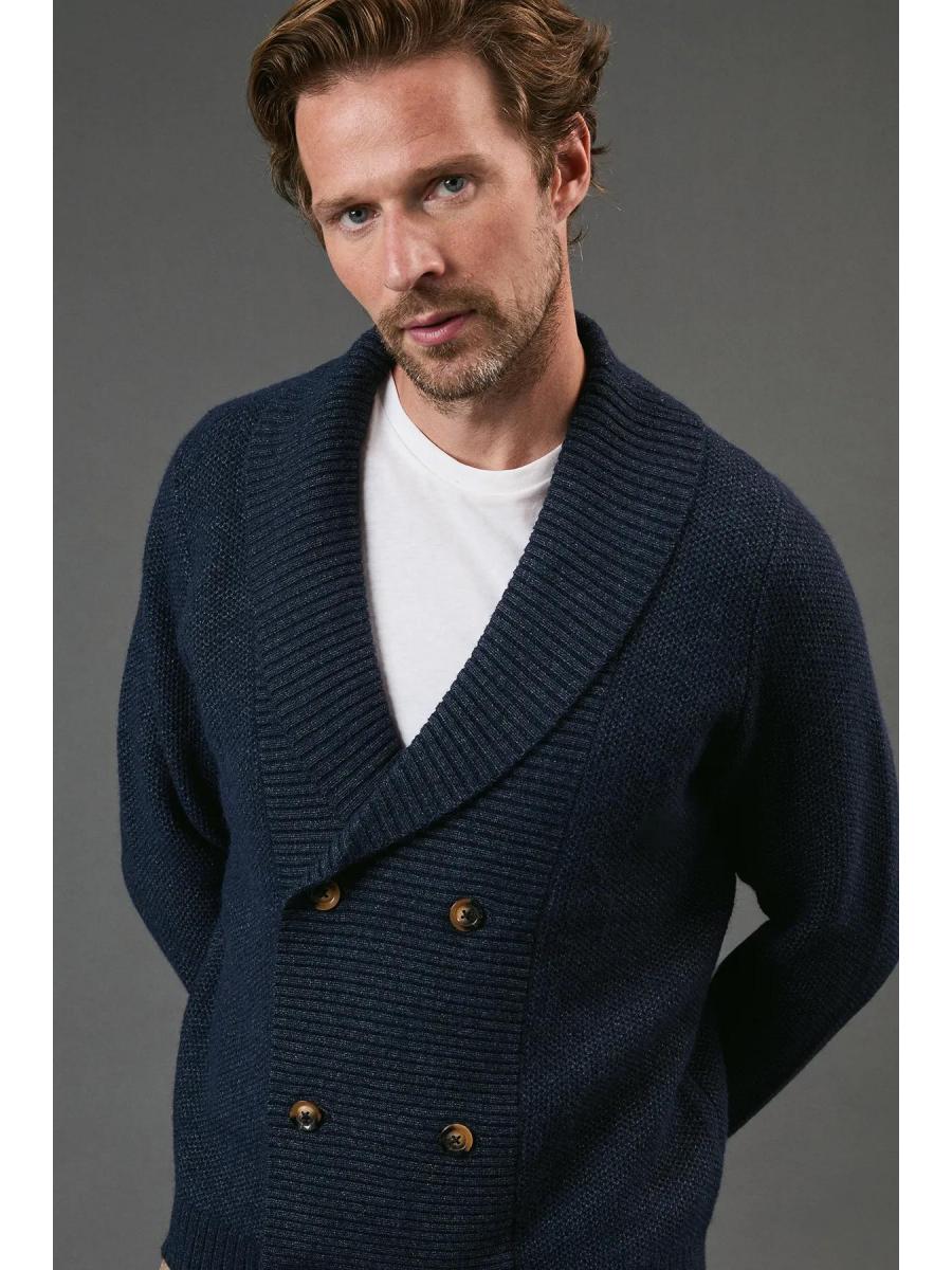 \u003cdiv\u003e \u003cul\u003e \u003cli\u003eDistinctive shawl collar design with ribbed detailing for a sophisticated finish\u003c/li\u003e \u003cli\u003eDouble-breasted front with stylish button fastening for a classic look\u003c/li\u003e \u003cli\u003eComfortable regular fit that allows for easy layering over shirts or t-shirts\u003c/li\u003e \u003cli\u003eRibbed cuffs and hem provide structure and shape retention\u003c/li\u003e \u003cli\u003eVersatile knitted texture that adds depth and visual interest to your outfit\u003c/li\u003e\r\n \u003c/ul\u003e\r\n \u003cp\u003eThis Maine Shawl Neck Knitted Cardigan combines timeless design with contemporary styling, making it a versatile addition to your casual wardrobe. The distinctive shawl collar creates a refined silhouette, while the double-breasted button detail adds a touch of sophistication to this everyday piece. Style it as shown with a crisp white t-shirt and chinos for a smart-casual look that works perfectly for weekend brunches or informal gatherings. For cooler evenings, layer over a lightweight roll neck and pair with dark denim jeans and white trainers for an effortlessly stylish ensemble. The cardigan's adaptable nature makes it ideal for family gatherings, casual office environments, or relaxed social occasions where comfort meets style. A true wardrobe staple that will serve you well across multiple seasons.\u003c/p\u003e \u003c/div\u003e