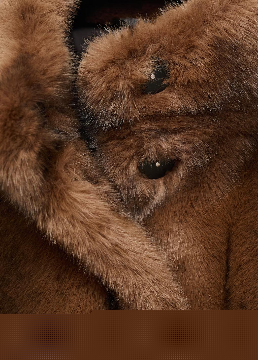 Efecto pelo. Diseño recto. Cuello alto. Manga larga con puños elásticos. Dos bolsillos de solapa en la parte frontal. Cierre delantero con botones. Forro interior