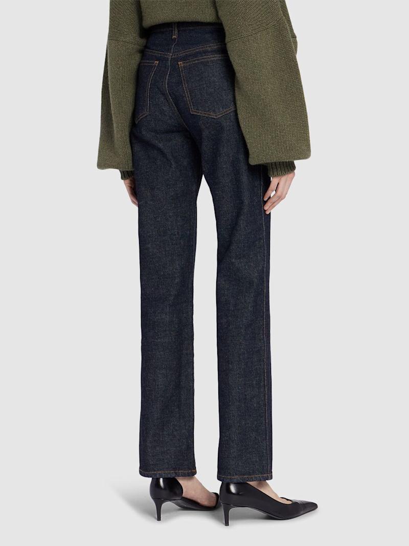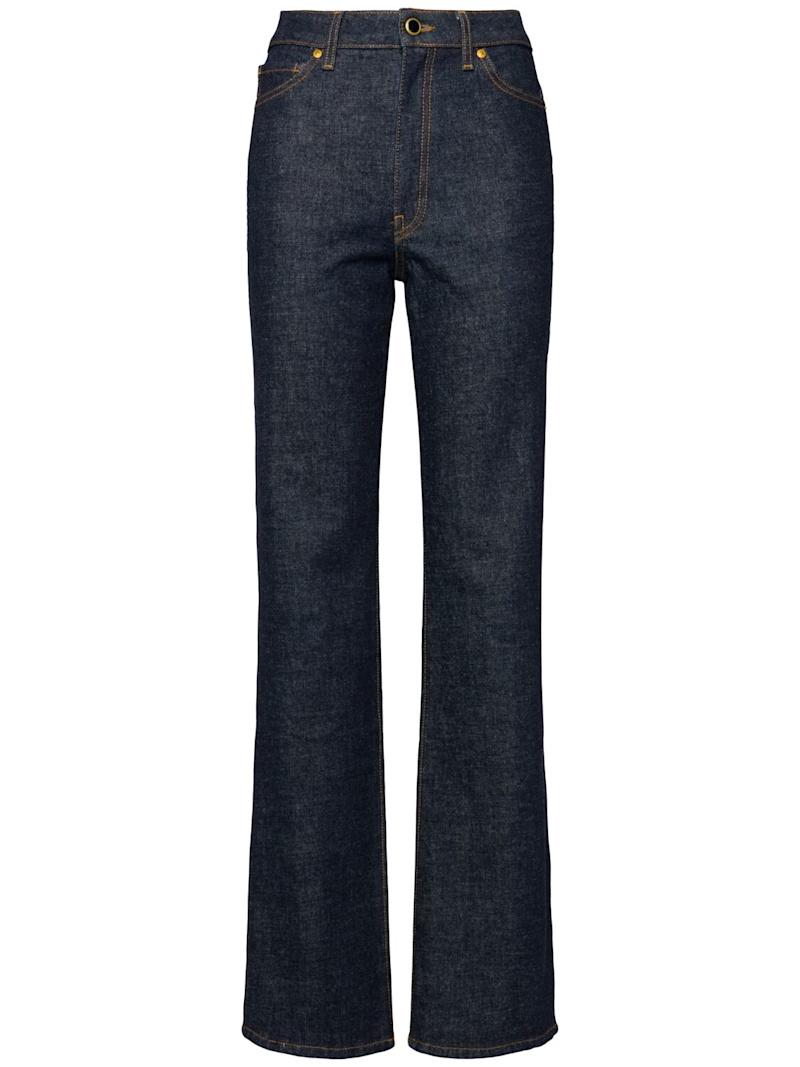 Danielle高腰直筒牛仔裤 - 深蓝色 - 女士 - Khaite - 正面纽扣和隐藏式拉链开合.