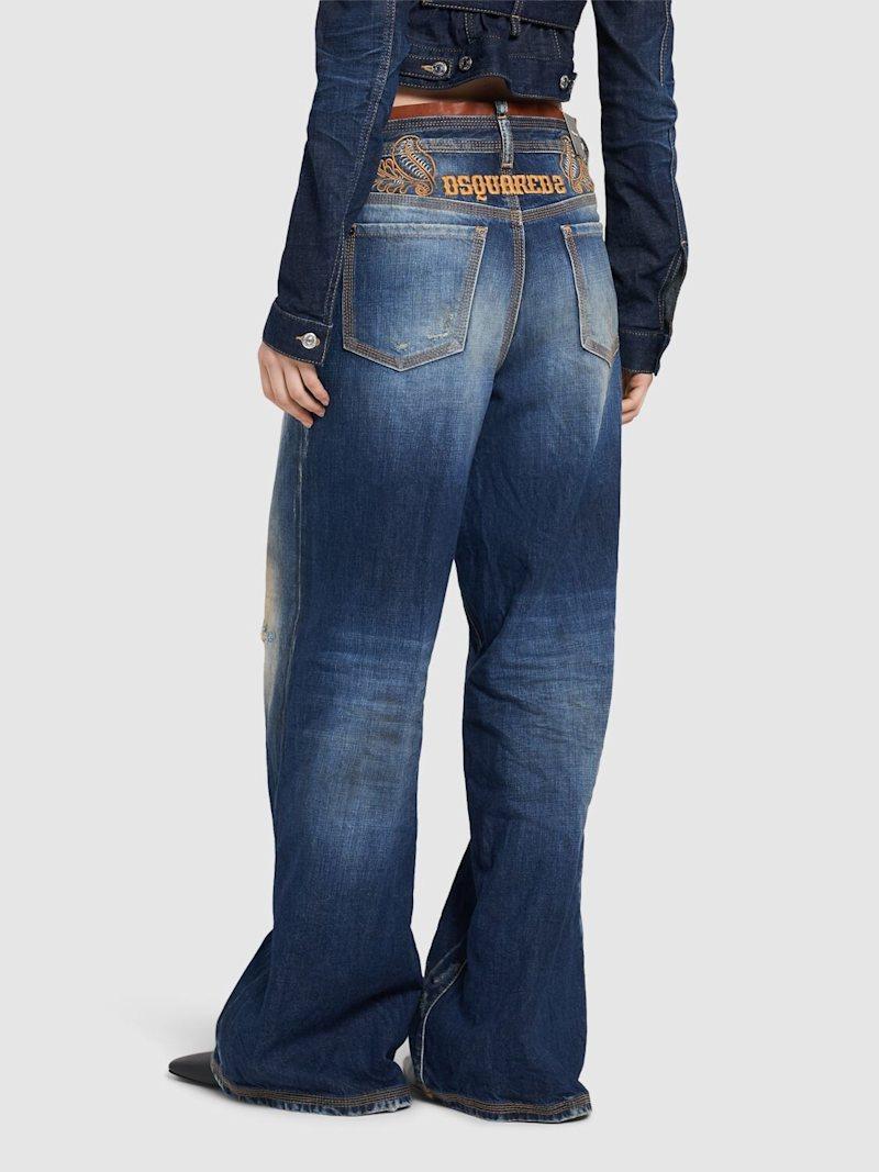 Traveller宽松牛仔裤 - 海军蓝 - 女士 - Dsquared2 - 正面纽扣和隐藏式拉链开合.