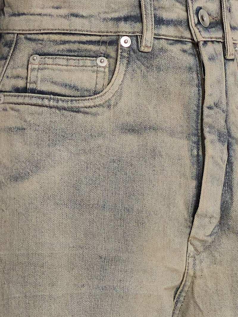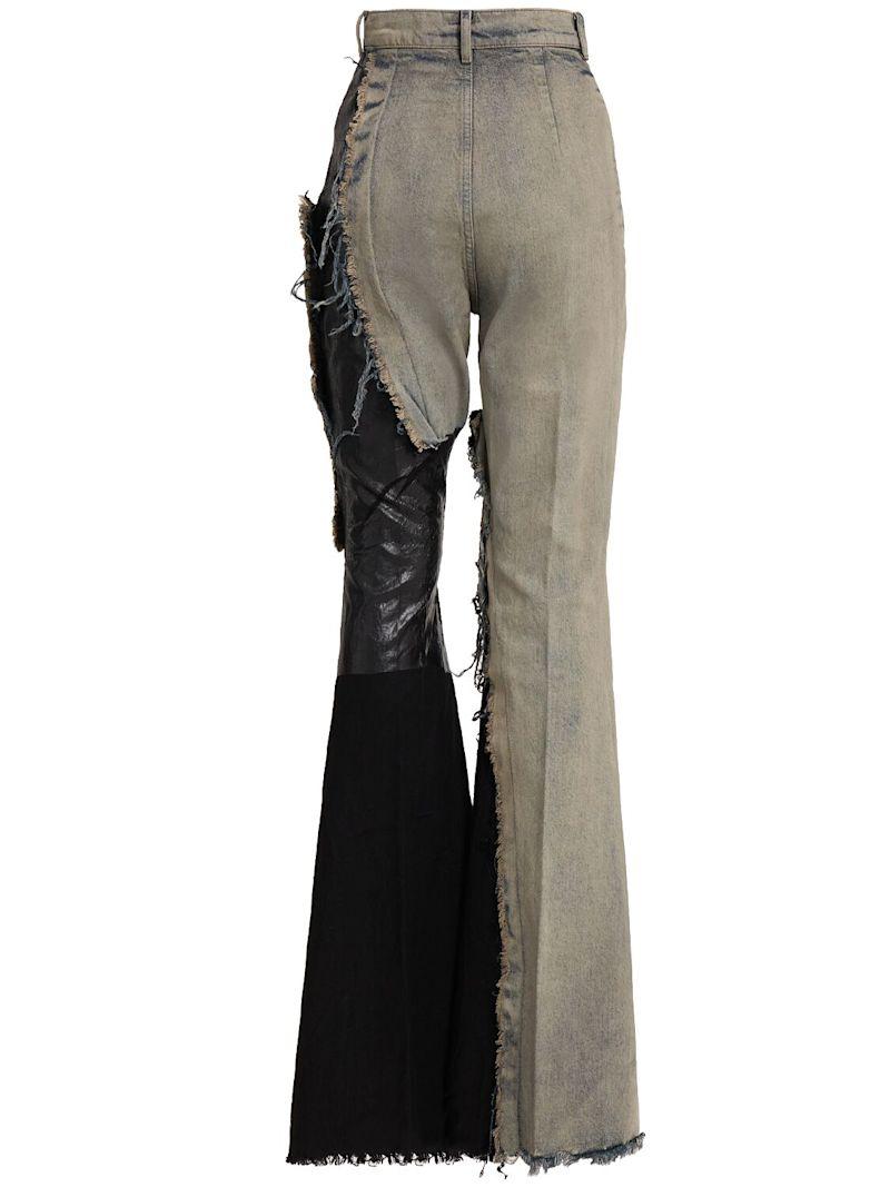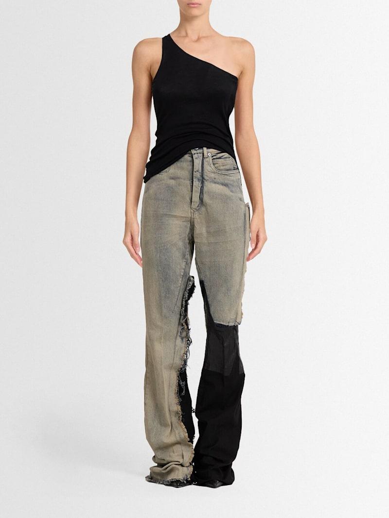 Bolan靴形牛仔裤 - 米黄色/黑色 - 女士 - Rick Owens - 正面纽扣和隐藏式拉链开合.