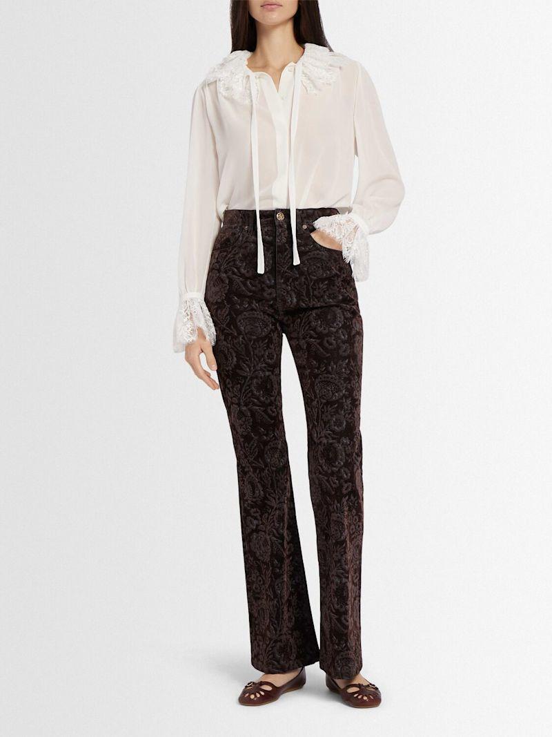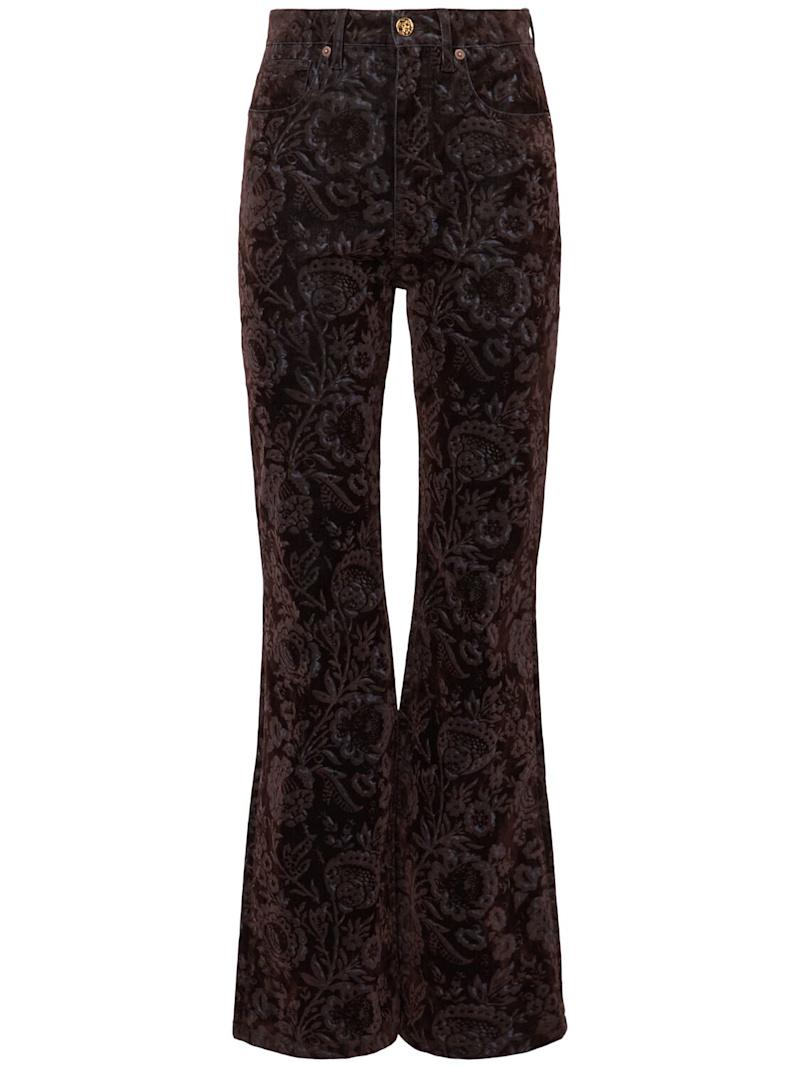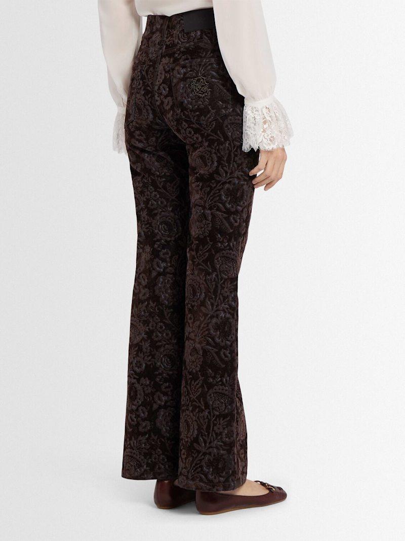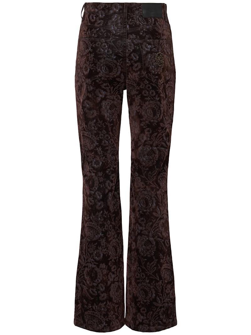 印花植绒高腰喇叭牛仔裤 - 棕色/多色 - 女士 - Chloé - 正面纽扣和隐藏式拉链开合.