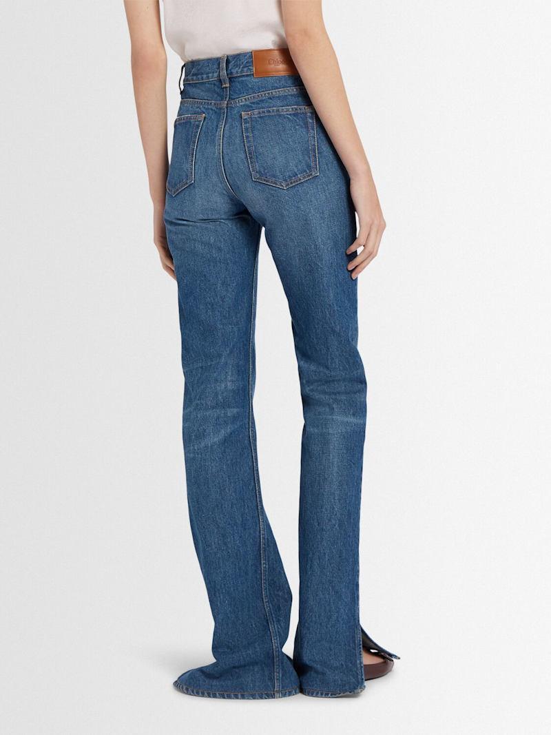 高腰直筒牛仔裤 - 蓝色 - 女士 - Chloé - 正面纽扣和隐藏式拉链开合.