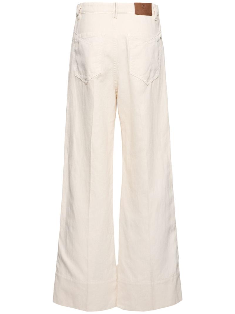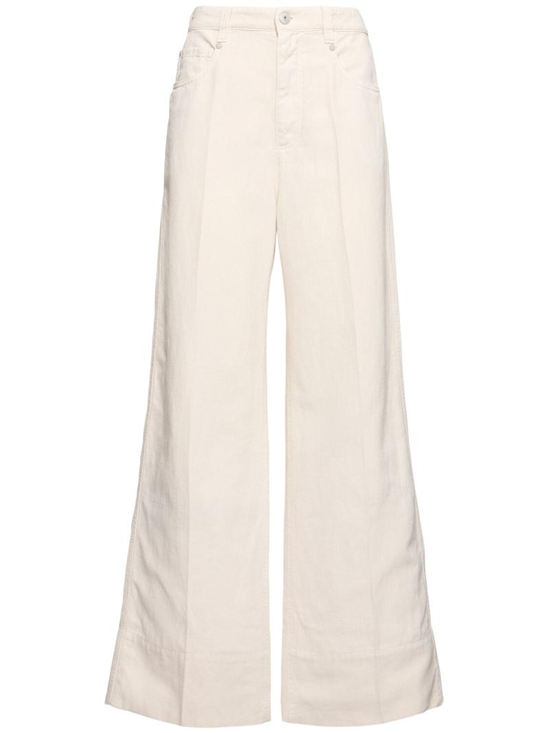 扎染棉&亚麻中腰喇叭腿牛仔裤 - 象牙色 - 女士 - Brunello Cucinelli - 正面纽扣和隐藏式拉链开合.