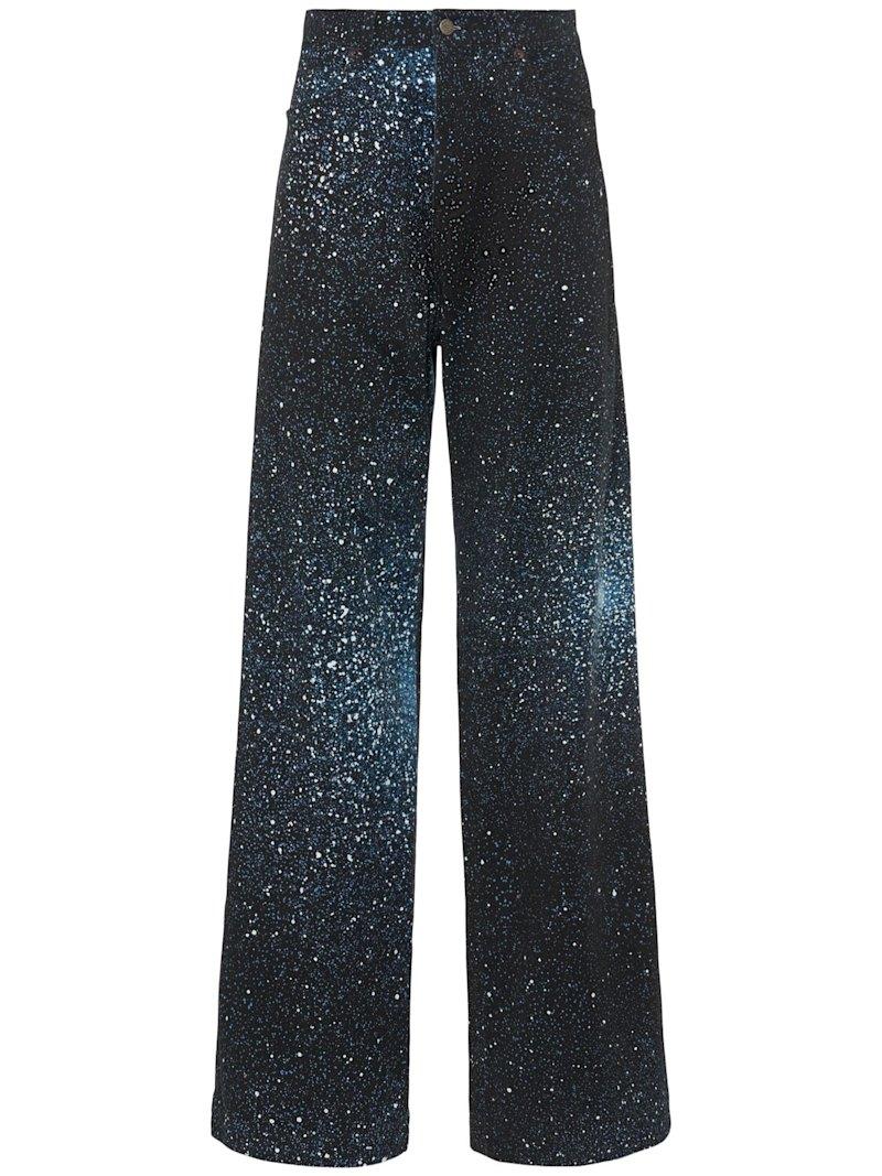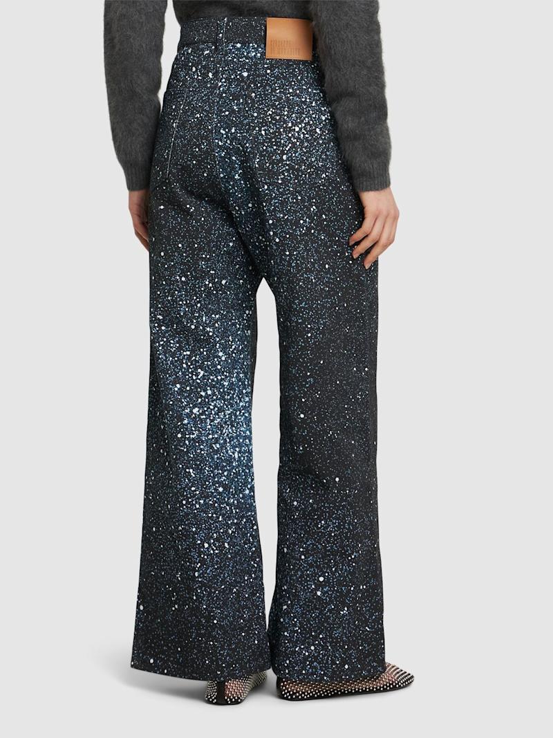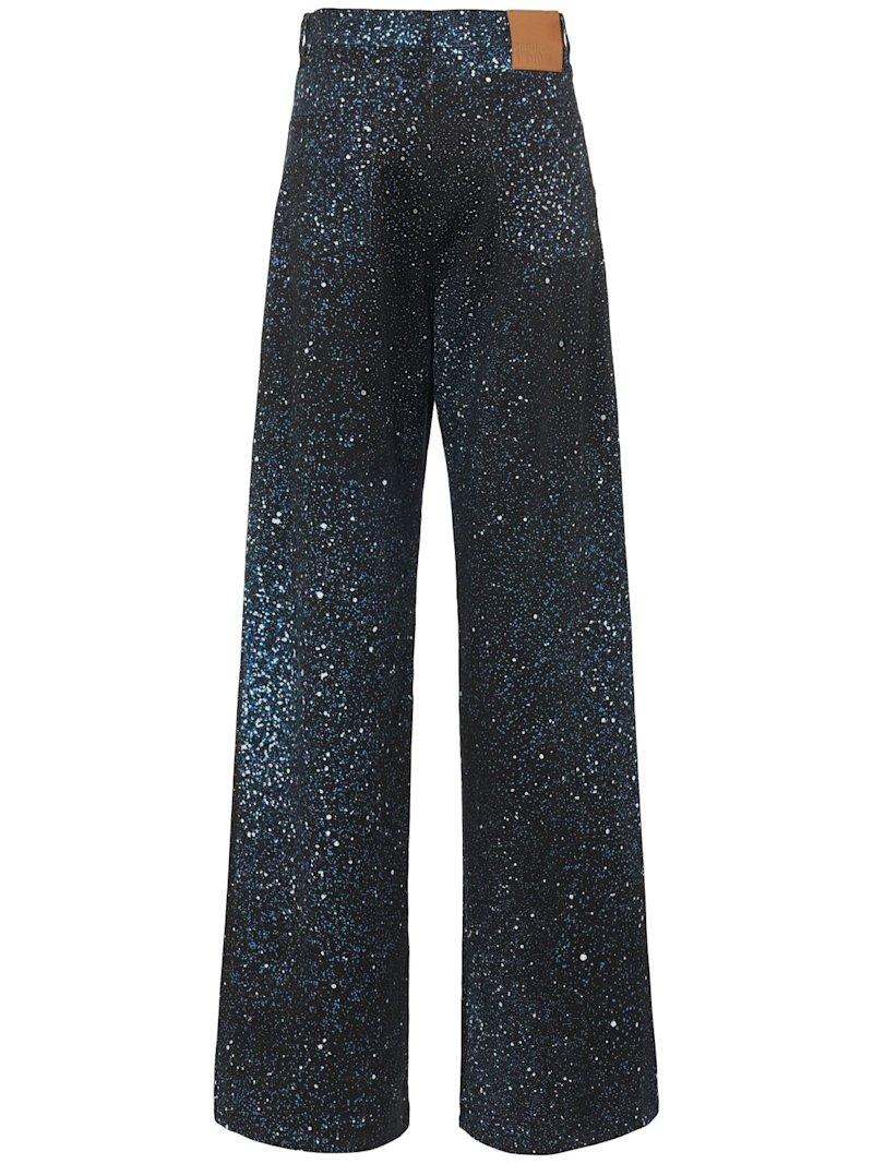装饰阔腿牛仔裤 - 蓝色 - 女士 - Giuseppe Di Morabito - 正面纽扣和隐藏式拉链开合.