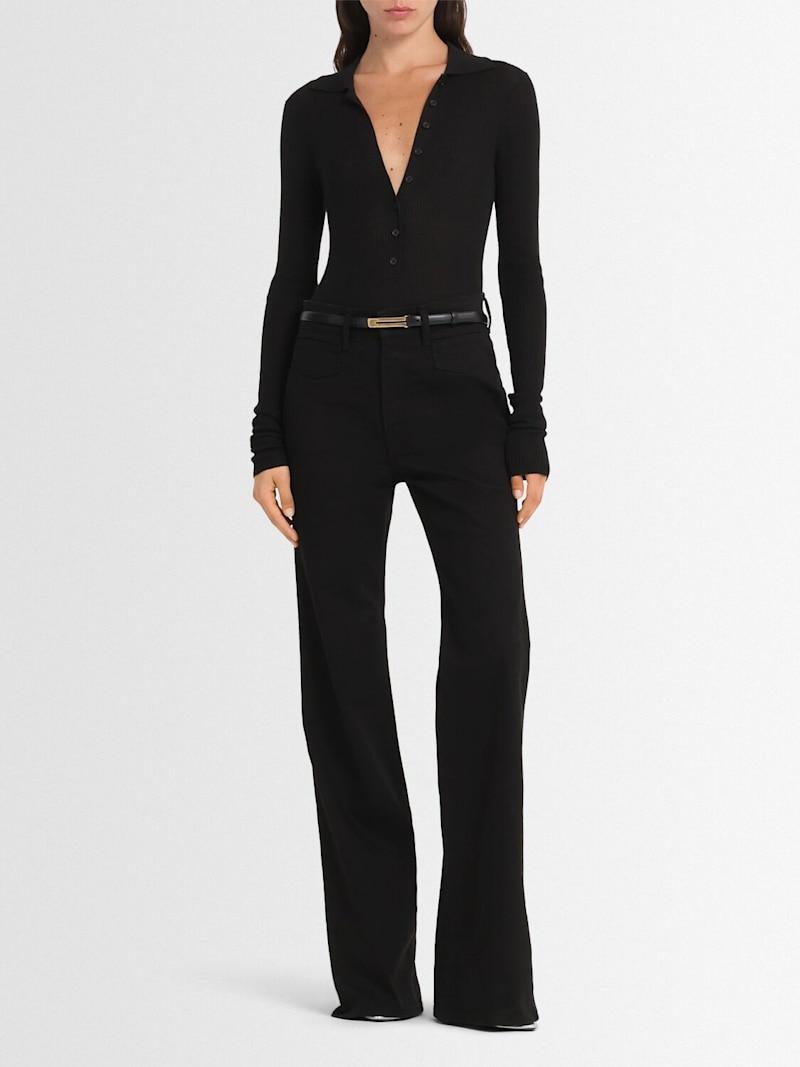 弹力喇叭牛仔裤 - 黑色 - 女士 - Tom Ford - 正面纽扣和隐藏式拉链开合.