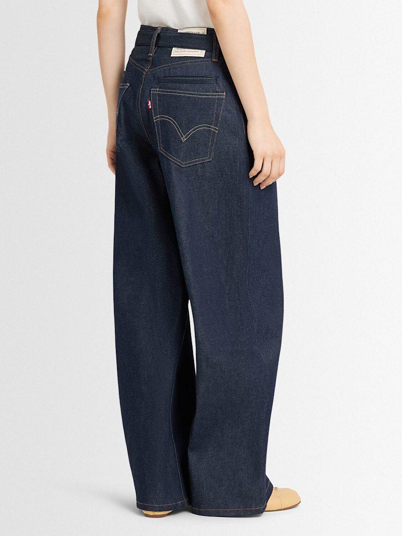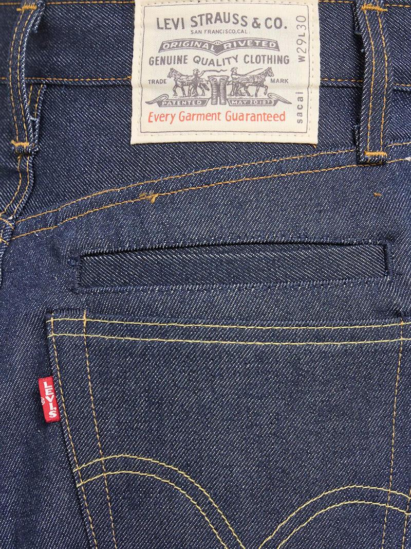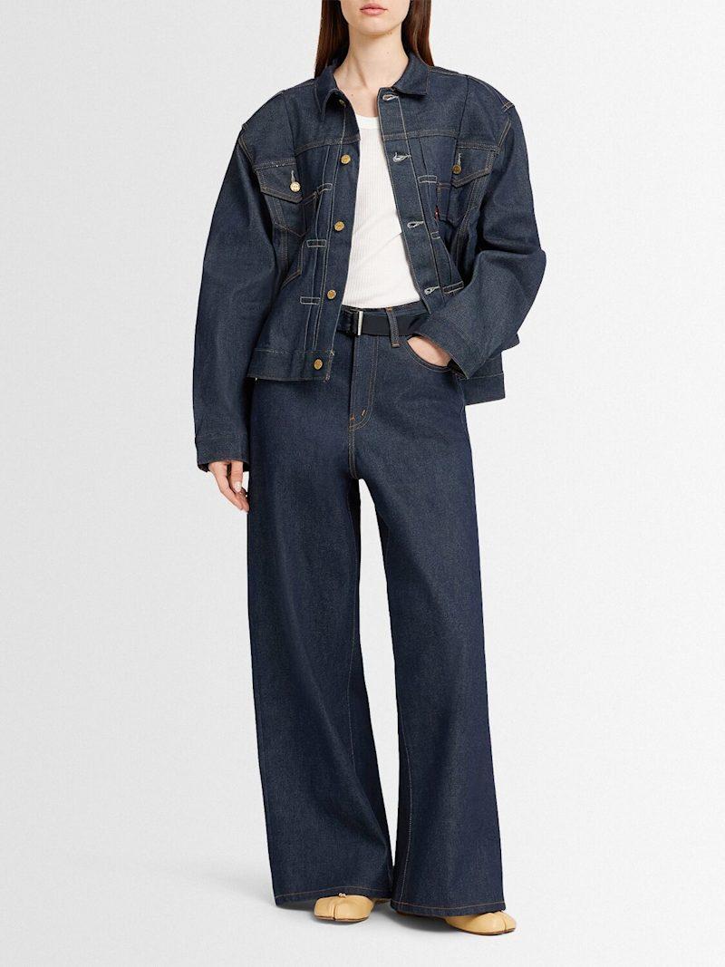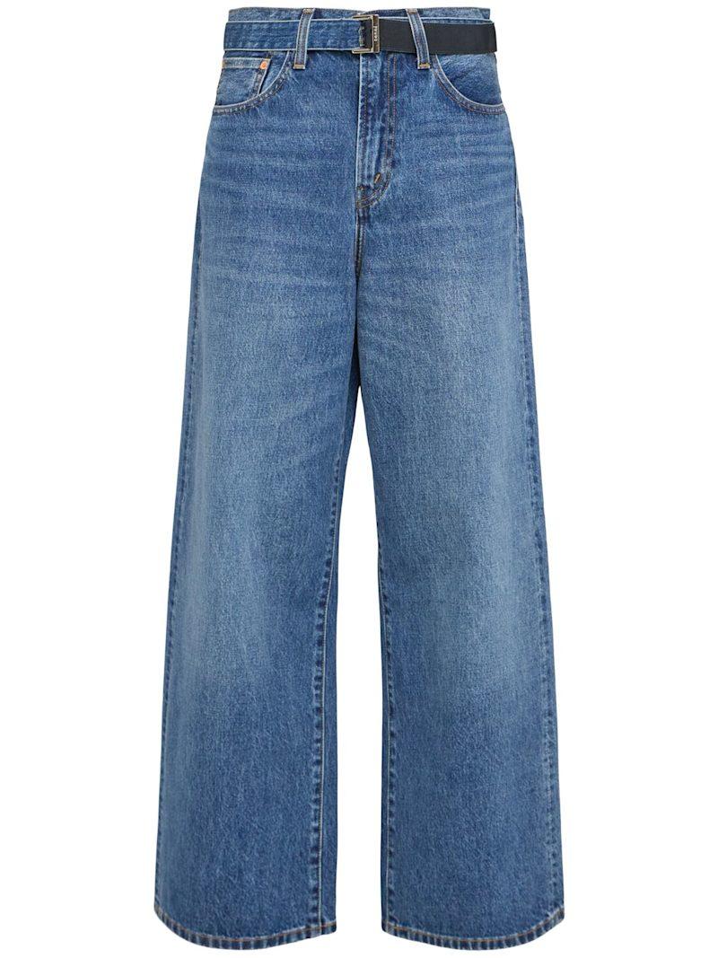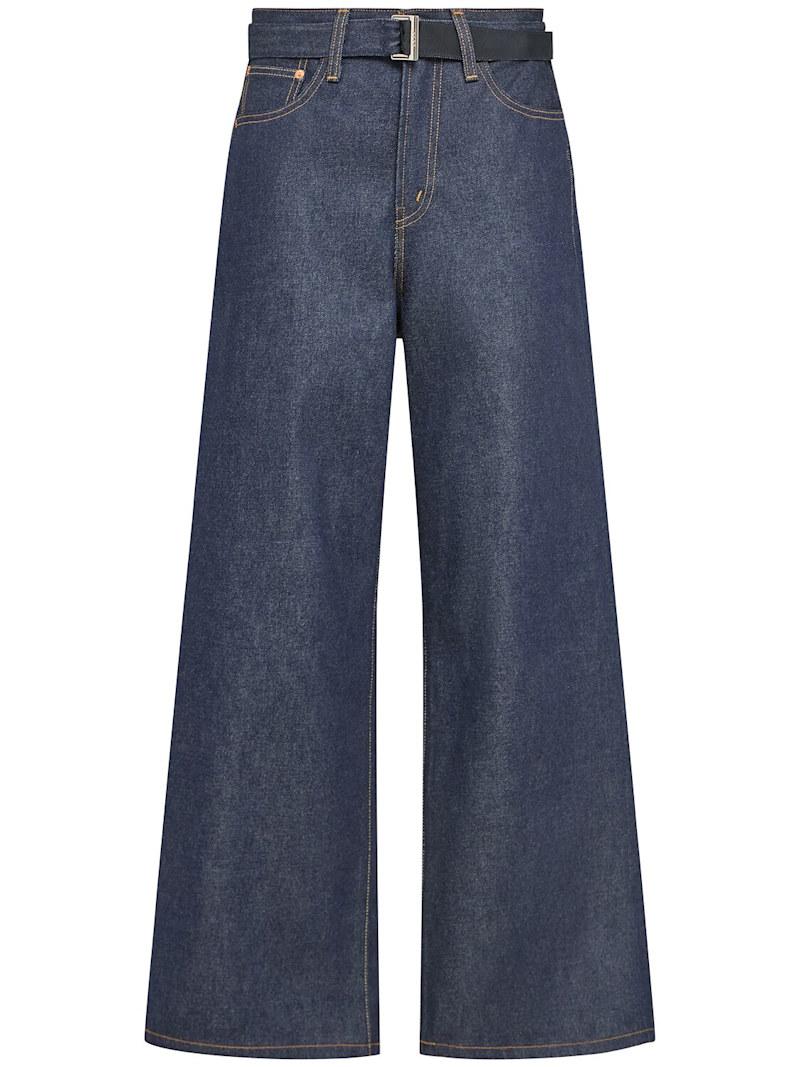 Levi's系腰带阔腿牛仔裤 - 深蓝色 - 女士 - Sacai - 正面纽扣和隐藏式拉链开合.
