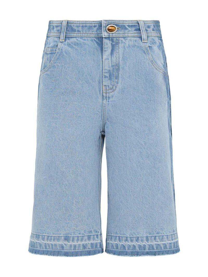 Fossil牛仔短裤 - 蓝色 - 女士 - Christopher Esber - 正面纽扣和隐藏式拉链开合.