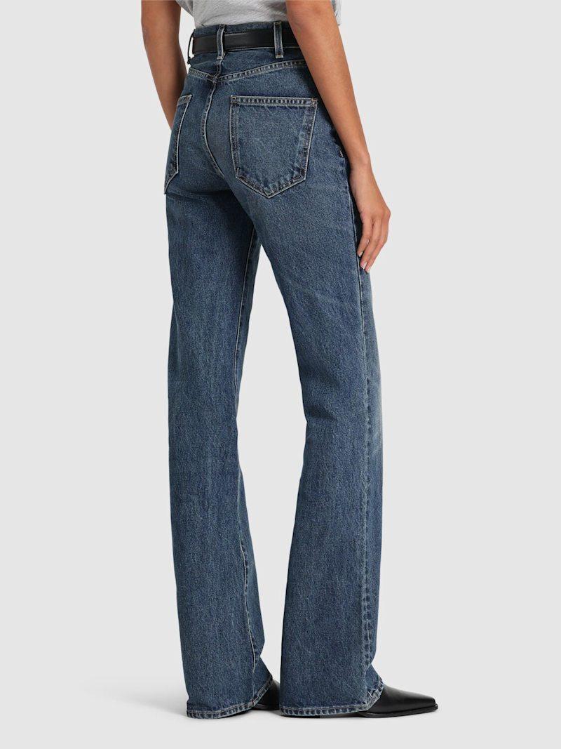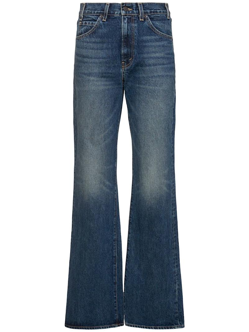 Joan高腰棉质喇叭腿牛仔裤 - 蓝色 - 女士 - Nili Lotan - 正面纽扣和隐藏式拉链开合.