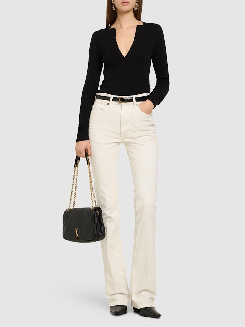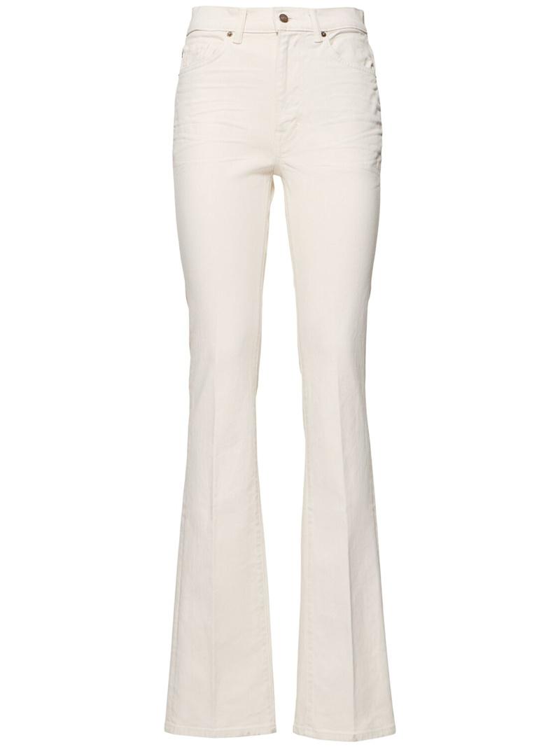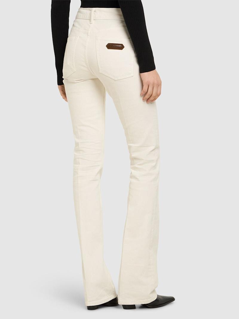 弹力喇叭腿牛仔裤 - 白色 - 女士 - Tom Ford - 正面纽扣和隐藏式拉链开合.