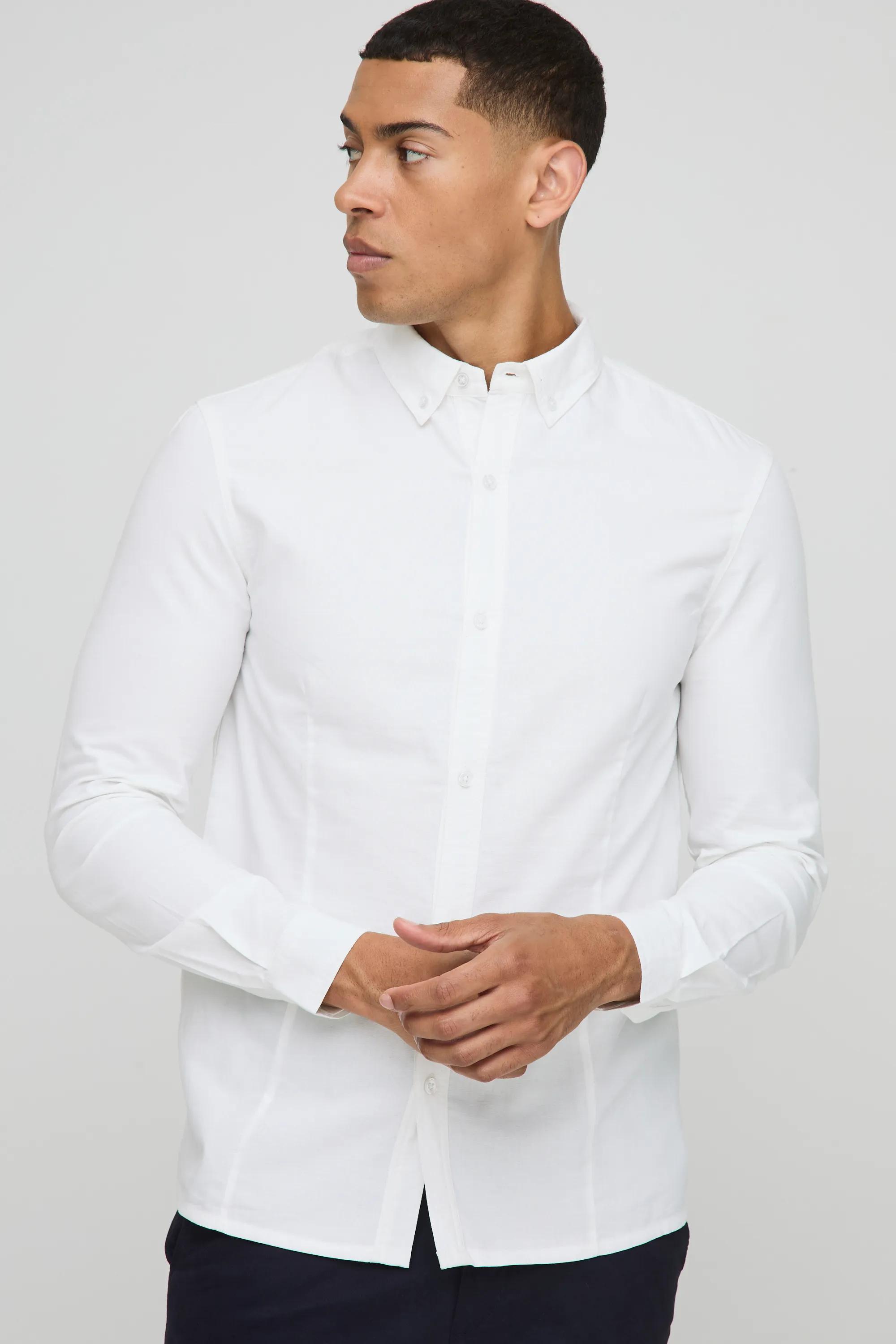 Shirts | Slim Fit Button Down Collar Oxford Long Sleeve Shirt | boohooMAN