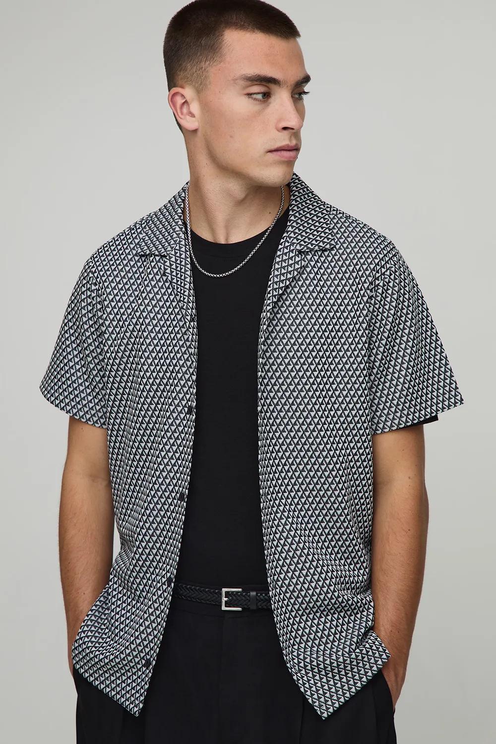 Shirts | Slim Short Sleeve Geo Shirt | boohooMAN