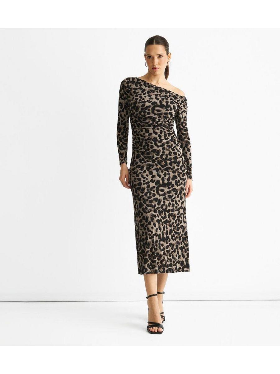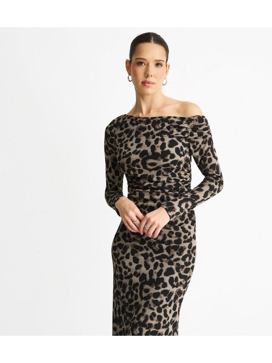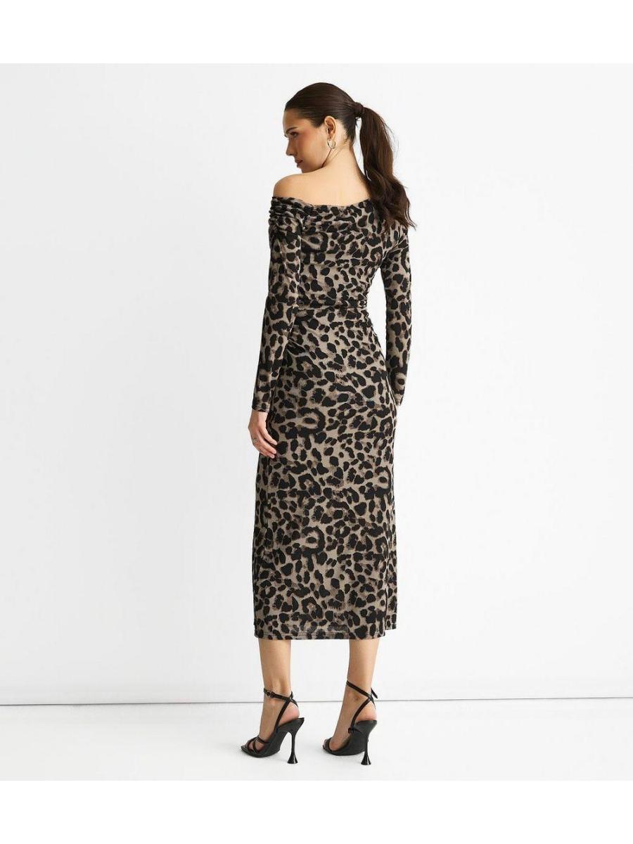Gini London Mid Grey Animal Print Off The Shoulder Dress