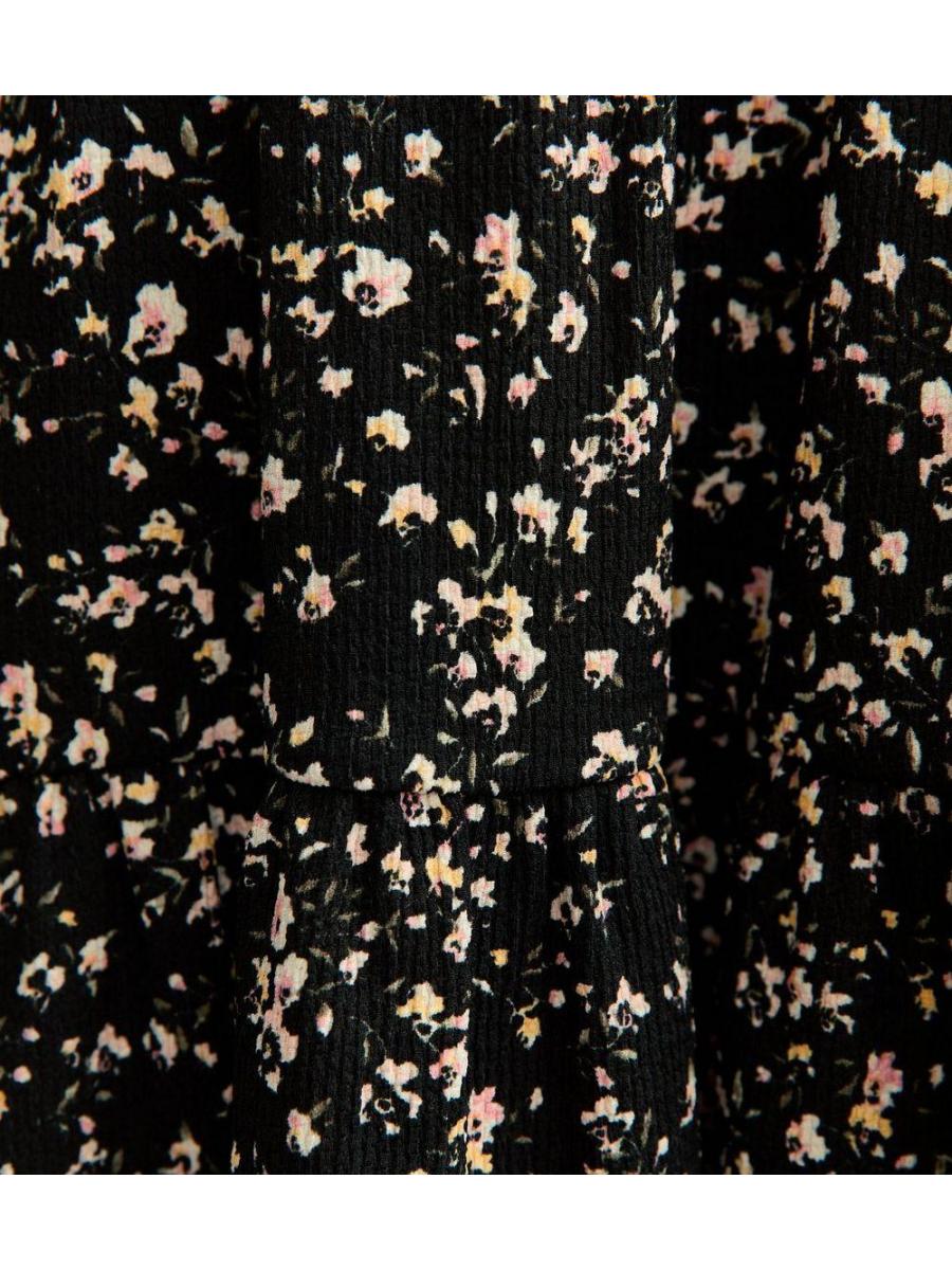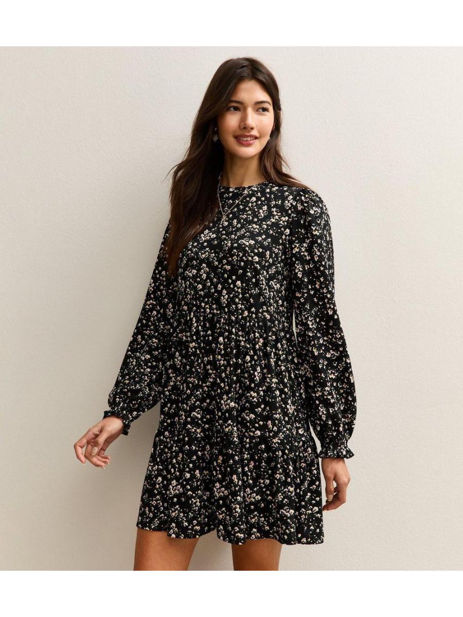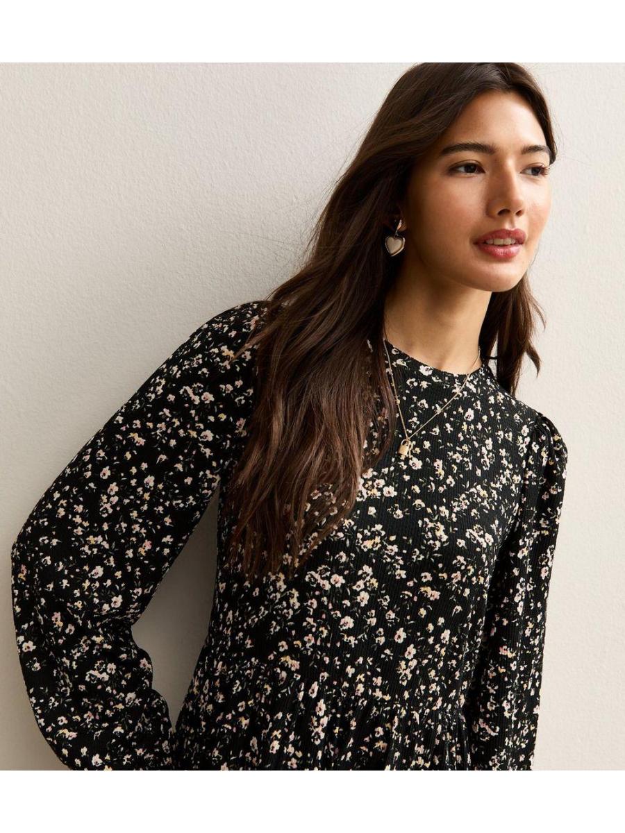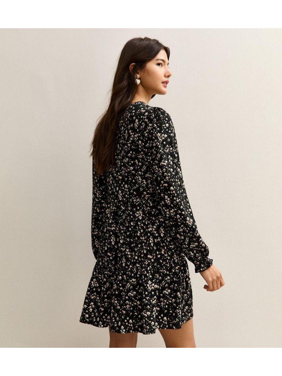 Black Floral Tiered Mini Dress