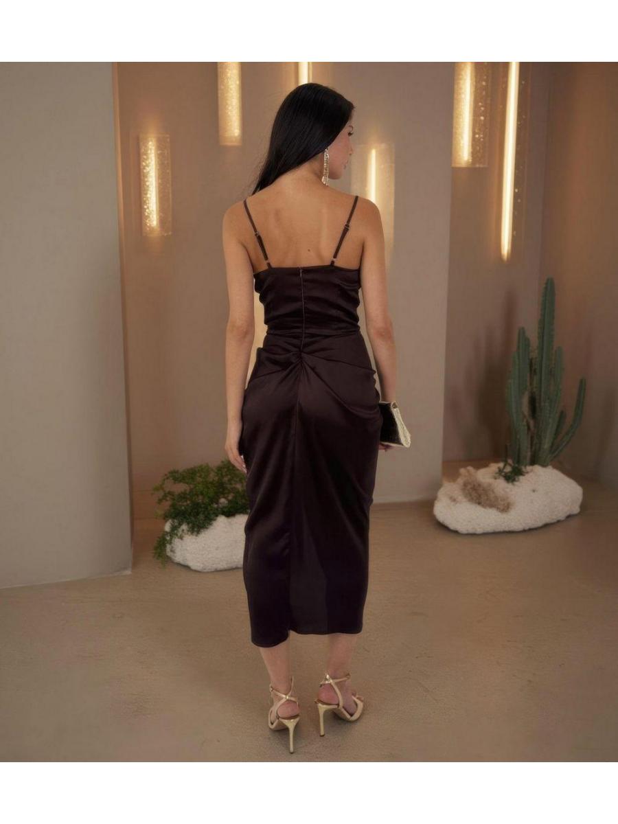 AX Paris Dark Brown Ruched Cowl Neck Midi Dress