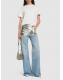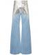 装饰高腰直筒牛仔裤 - 蓝色/银色 - 女士 - Rabanne - 正面纽扣和隐藏式拉链开合.