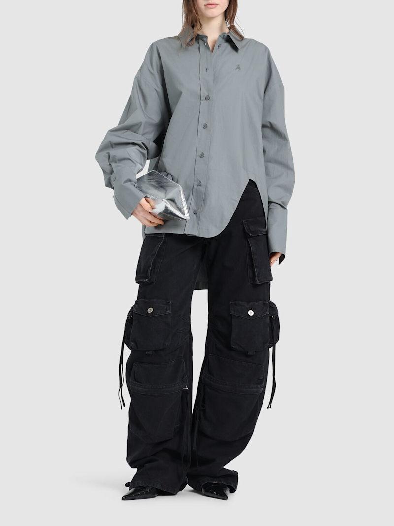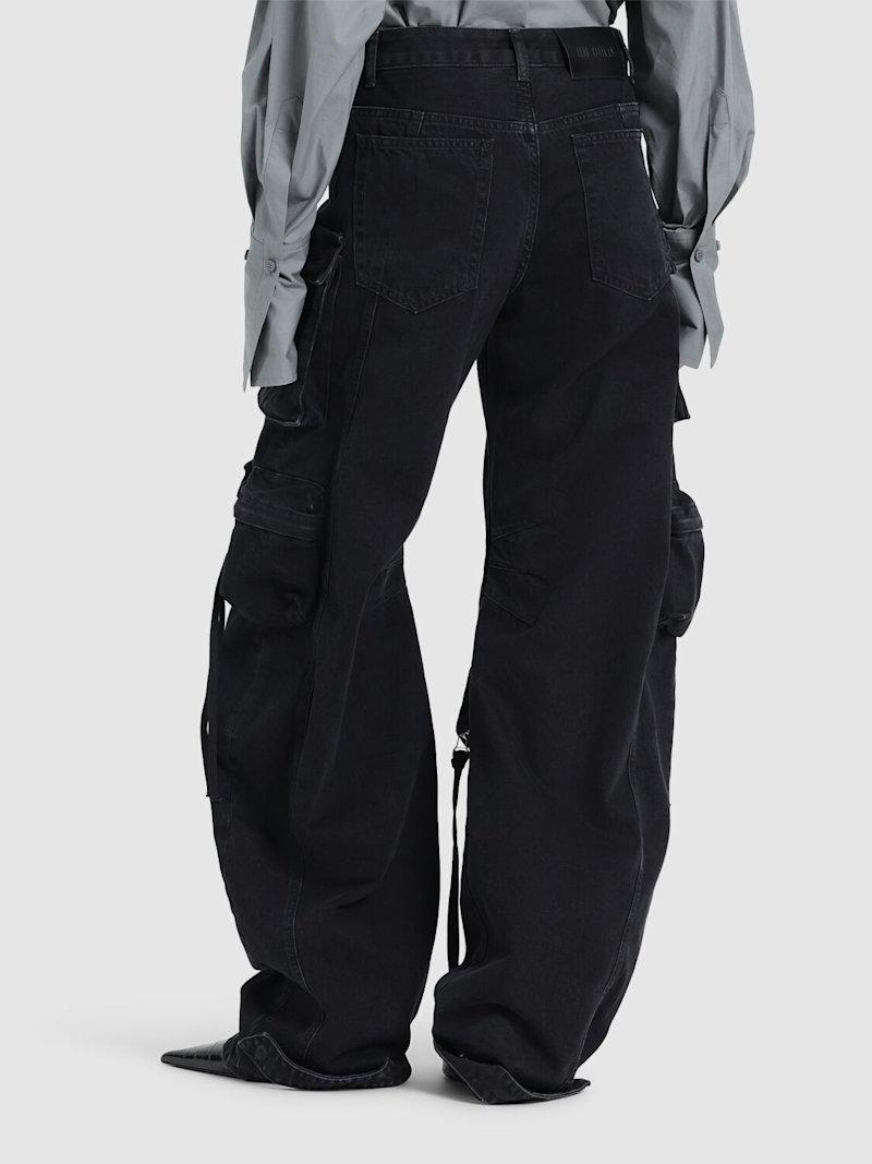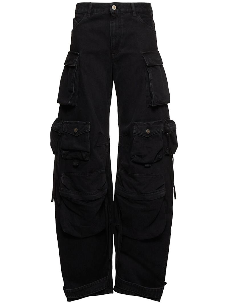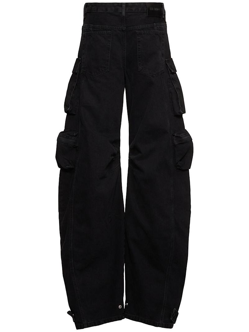 Fern低腰阔腿工装牛仔裤 - 黑色 - 女士 - The Attico - 正面纽扣和隐藏式拉链开合.
