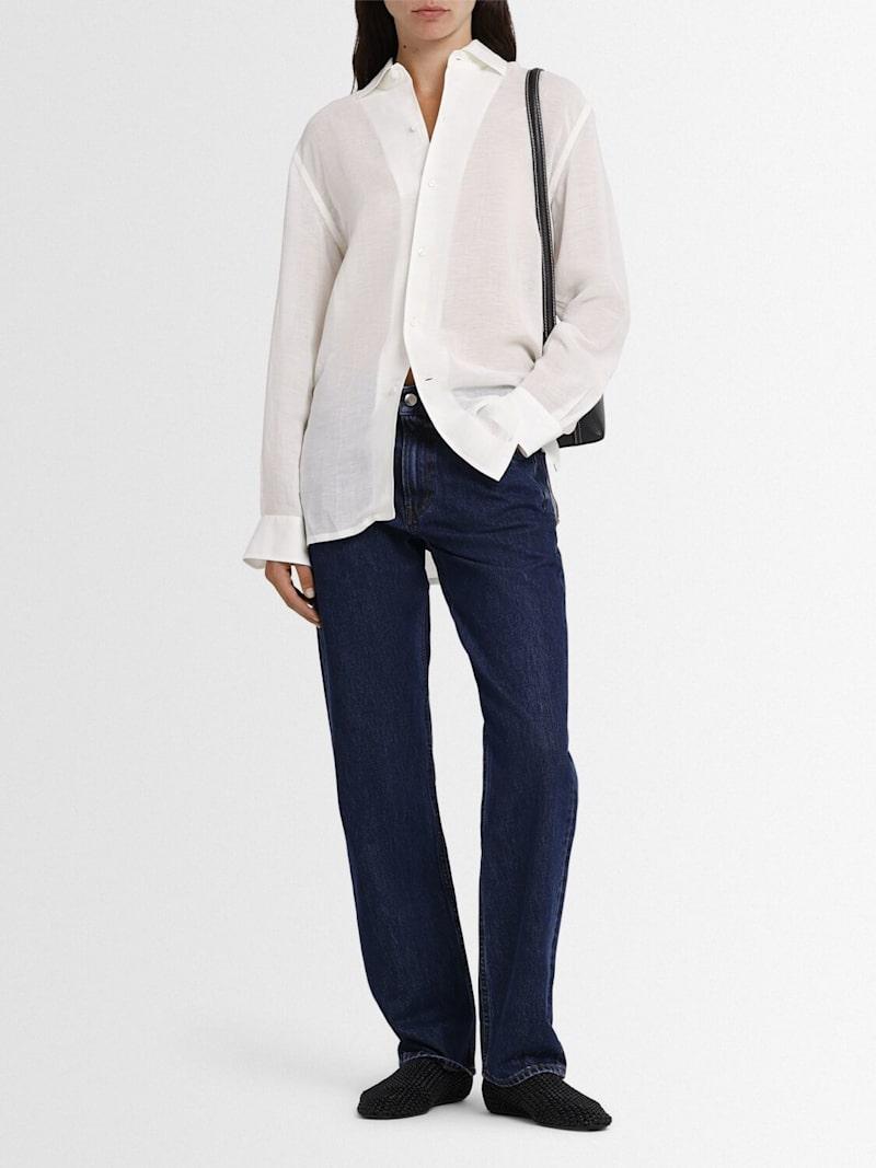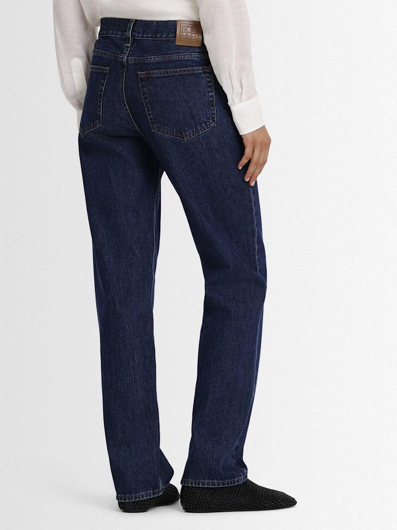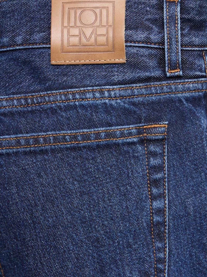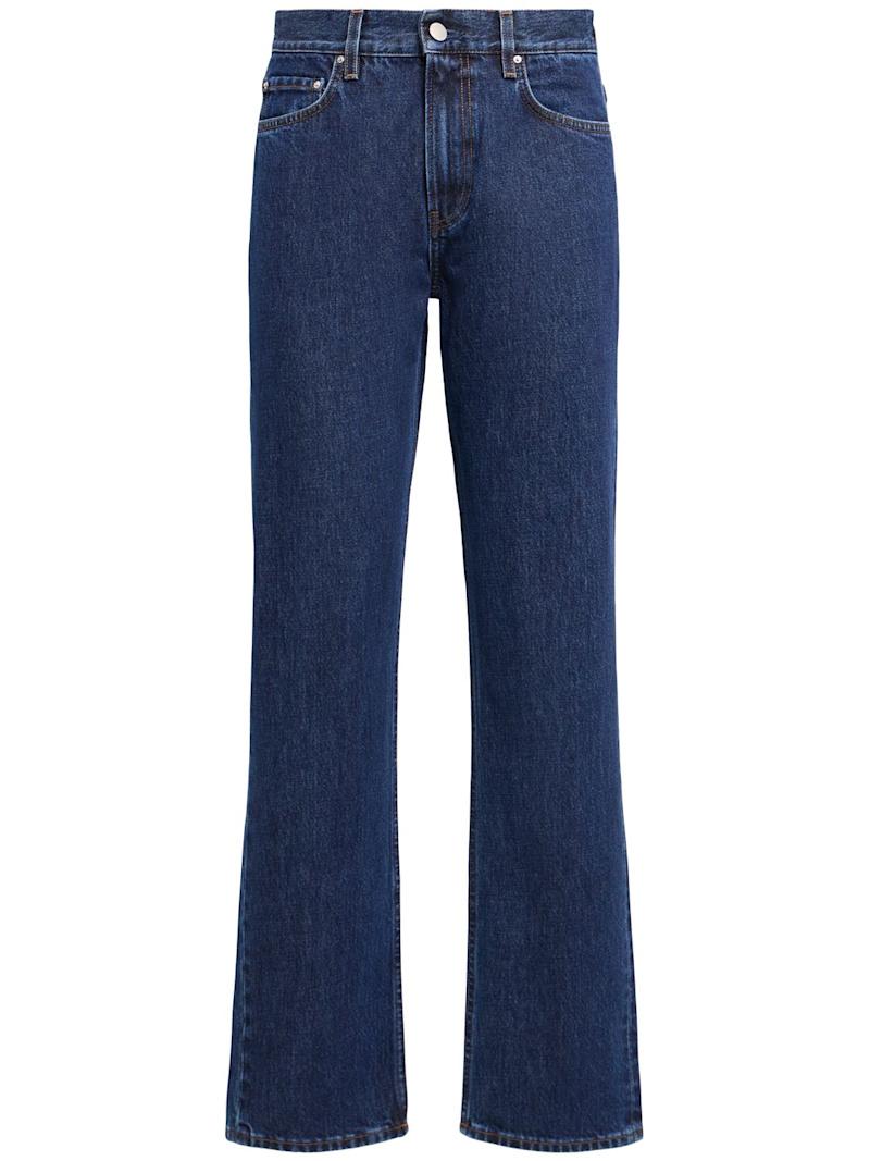 低腰棉质直筒牛仔裤 - 靛蓝色 - 女士 - Toteme - 正面纽扣和隐藏式拉链开合.