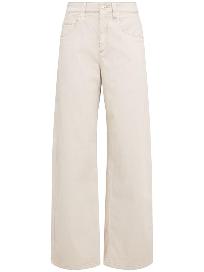 阔腿牛仔裤 - 白色 - 女士 - Brunello Cucinelli - 正面纽扣和隐藏式拉链开合.