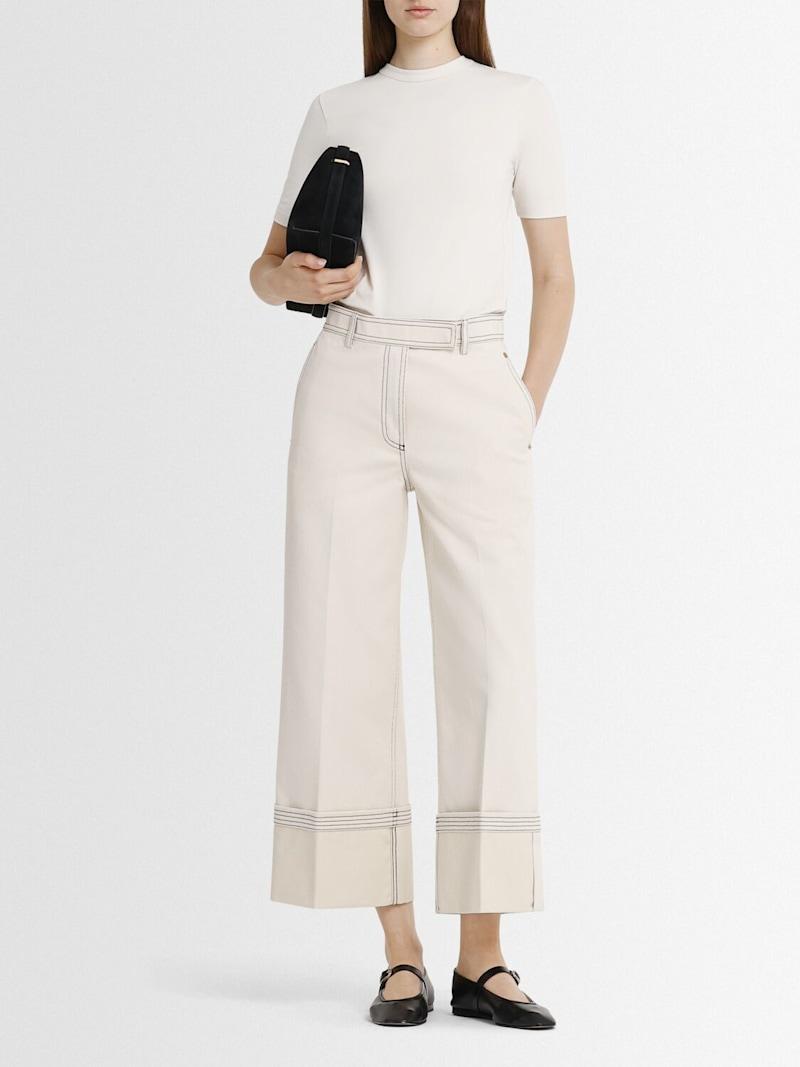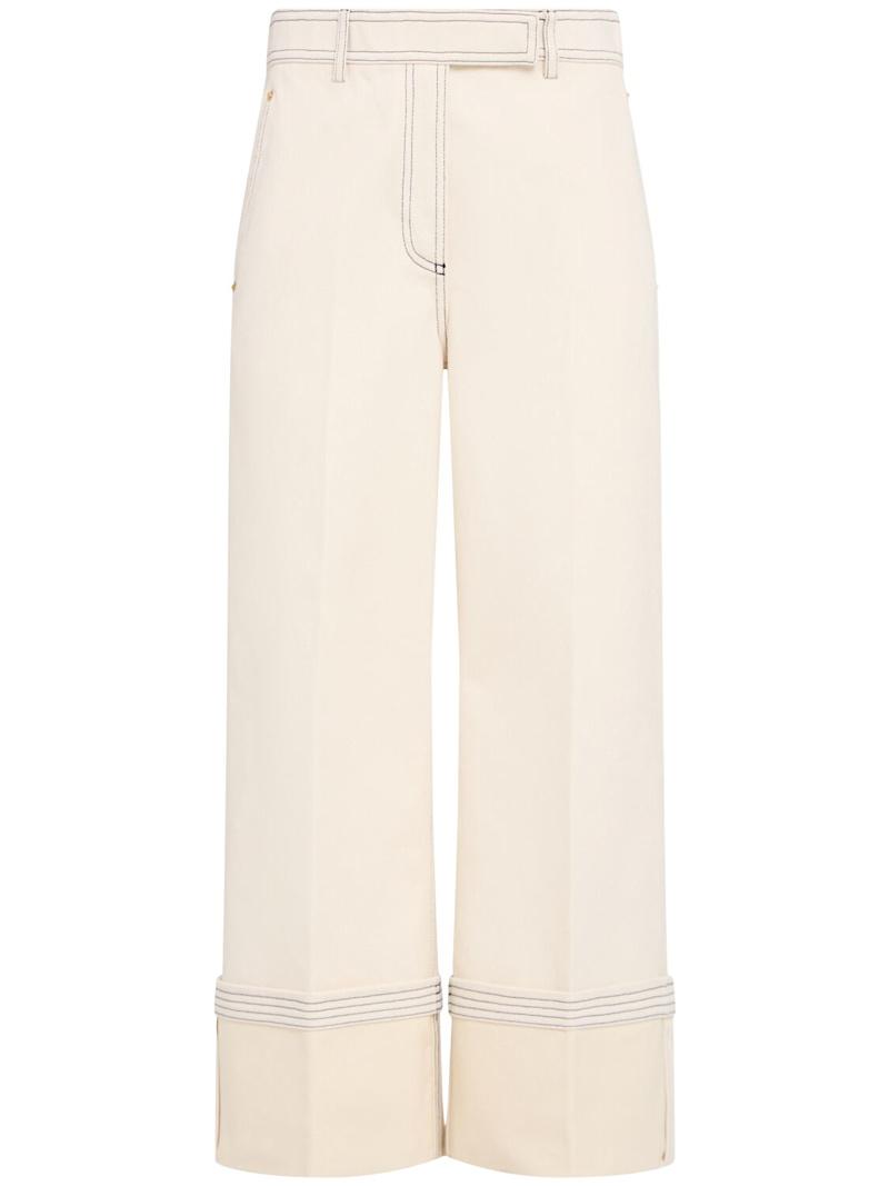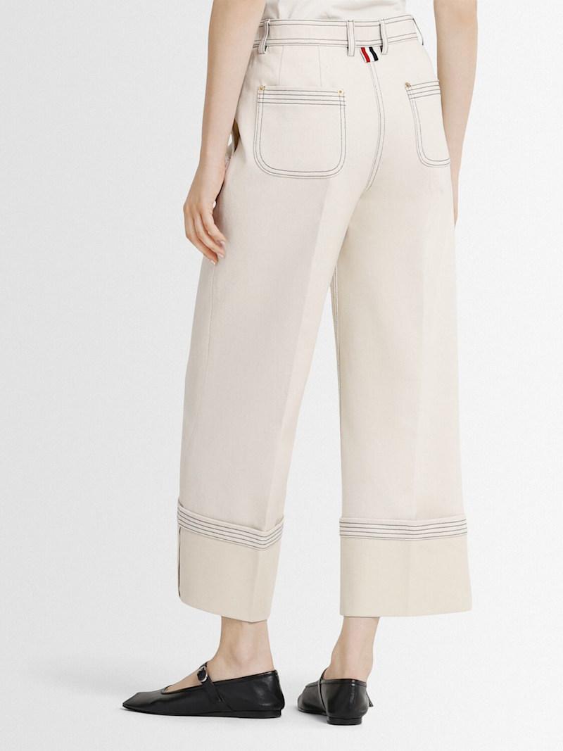 织边牛仔布阔腿裤 - 白色 - 女士 - Thom Browne - 隐藏式正面粘扣开合.